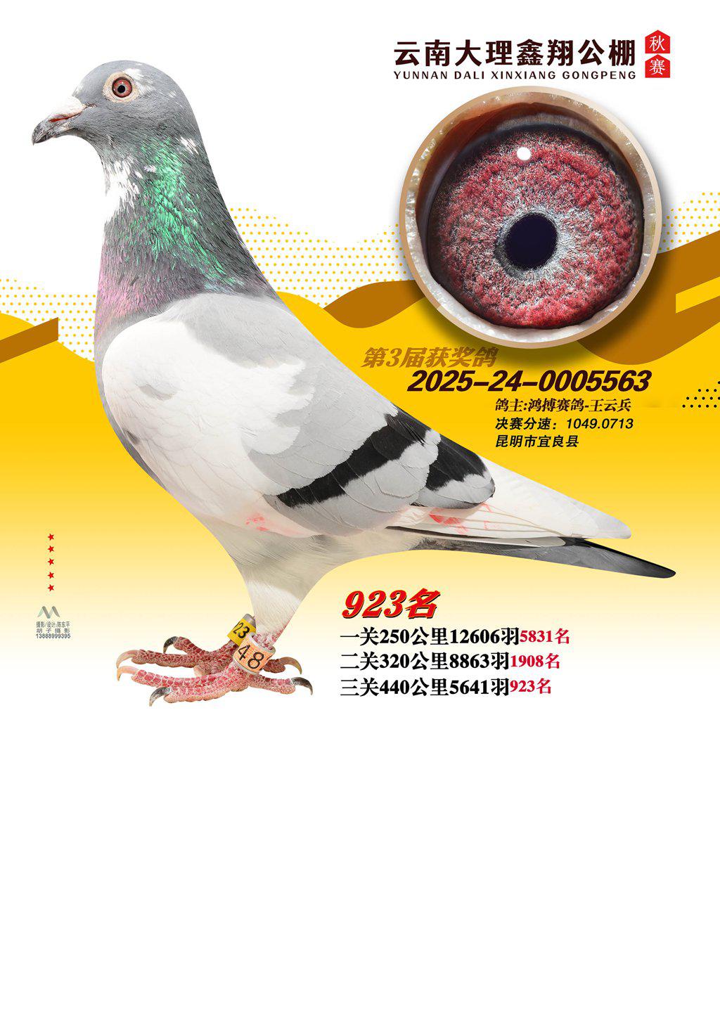 位置:云南大理鑫翔公棚2025获奖鸽展示\923名