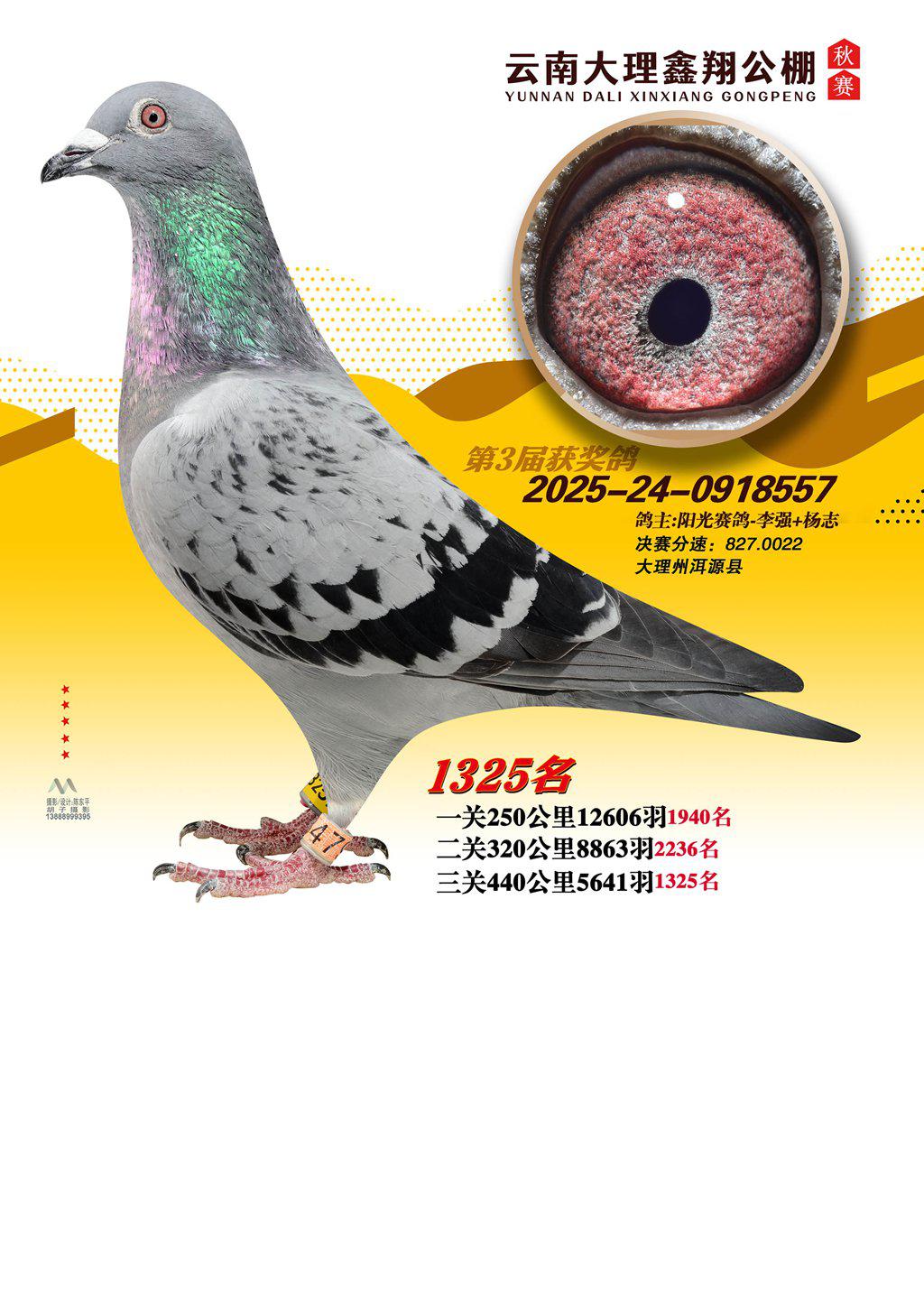 位置:云南大理鑫翔公棚2025获奖鸽展示\1325名