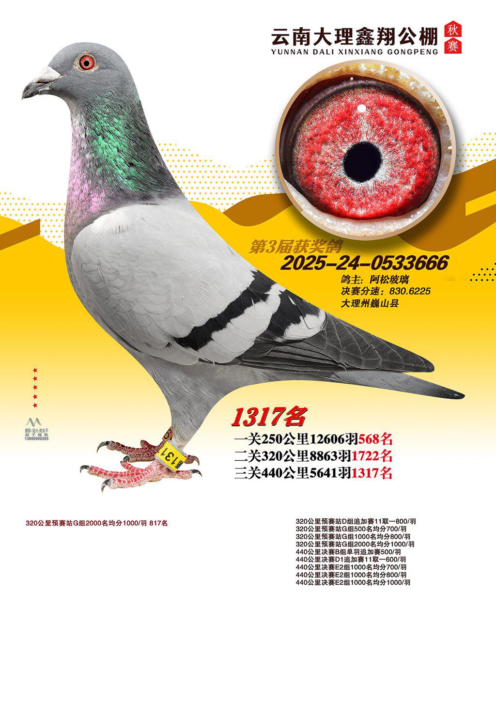 位置:云南大理鑫翔公棚2025获奖鸽展示\1317名