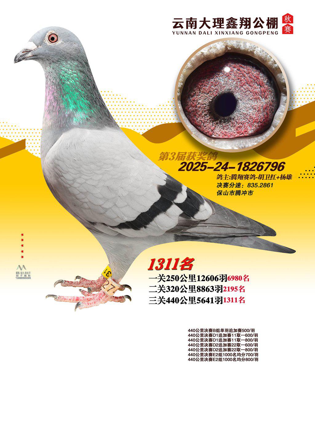 位置:云南大理鑫翔公棚2025获奖鸽展示\1311名