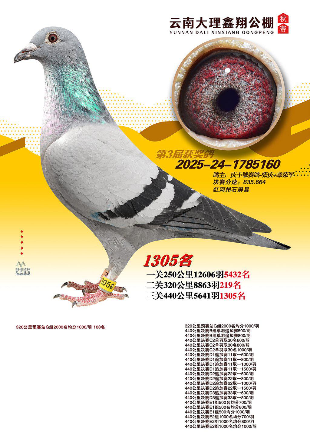 位置:云南大理鑫翔公棚2025获奖鸽展示\1305名