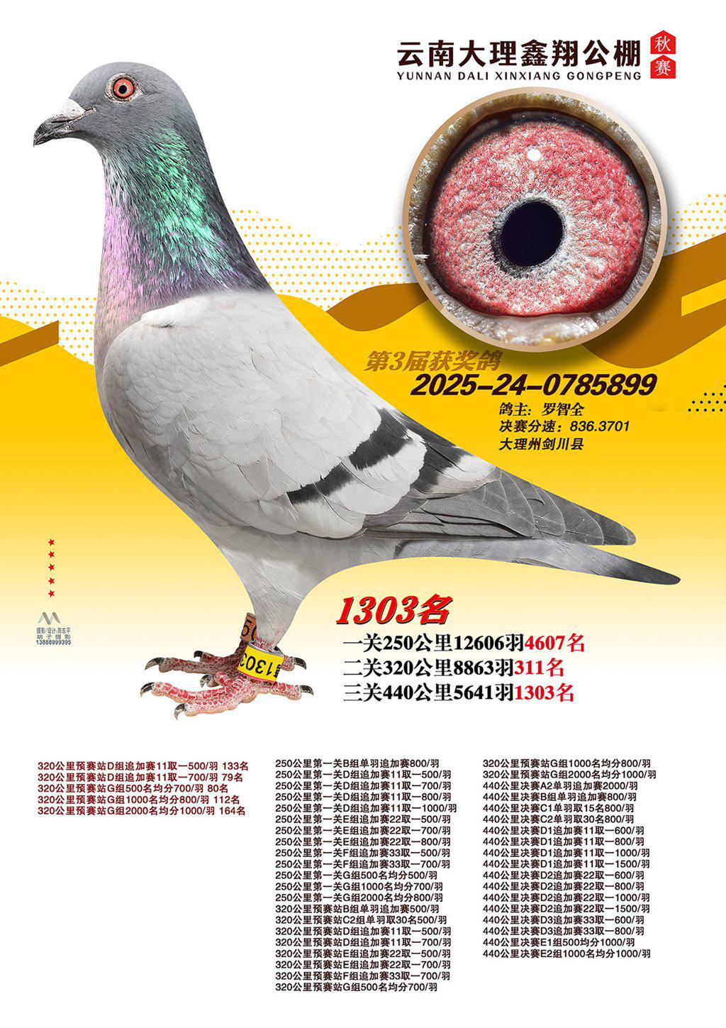 位置:云南大理鑫翔公棚2025获奖鸽展示\1303名