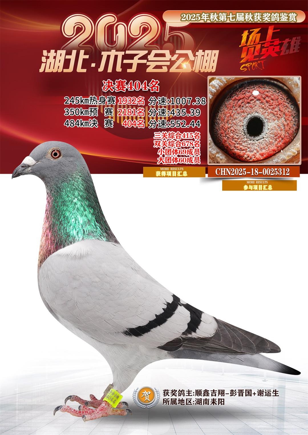 位置:湖北省木子会公棚2025获奖鸽展示\决赛404名