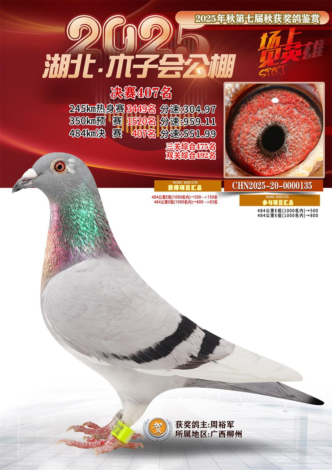 位置:湖北省木子会公棚2025获奖鸽展示\决赛407名
