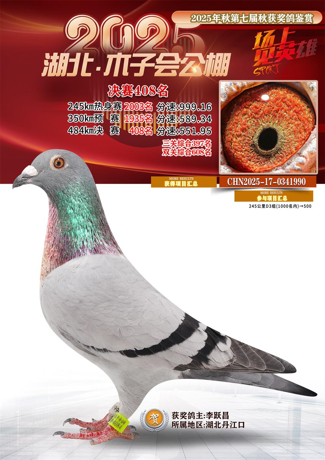 位置:湖北省木子会公棚2025获奖鸽展示\决赛408名