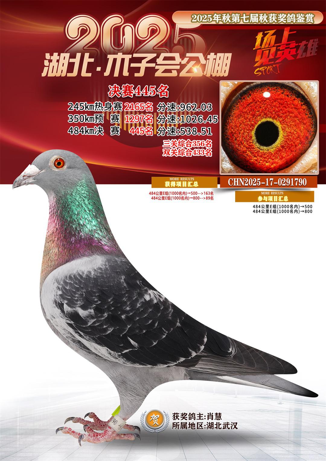 位置:湖北省木子会公棚2025获奖鸽展示\决赛445名