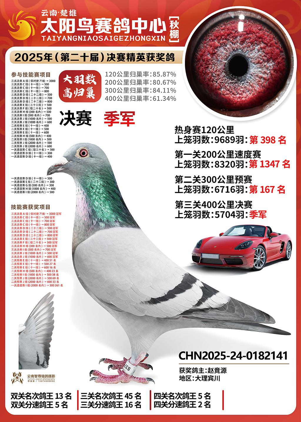 位置:云南太阳鸟赛鸽中心2025获奖鸽展示\决赛3名