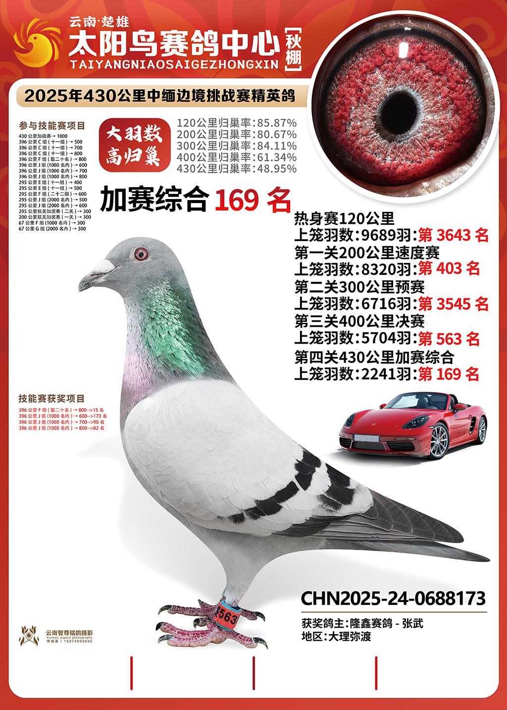 位置:云南太阳鸟赛鸽中心2025获奖鸽展示\加赛综合169名
