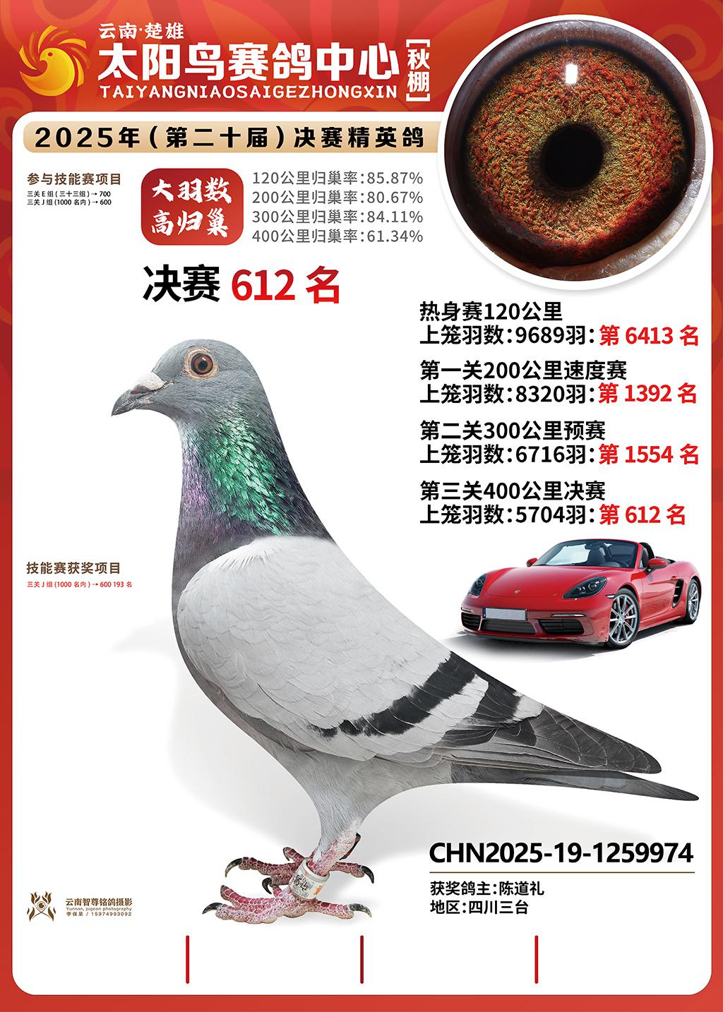 位置:云南太阳鸟赛鸽中心2025获奖鸽展示\决赛612名