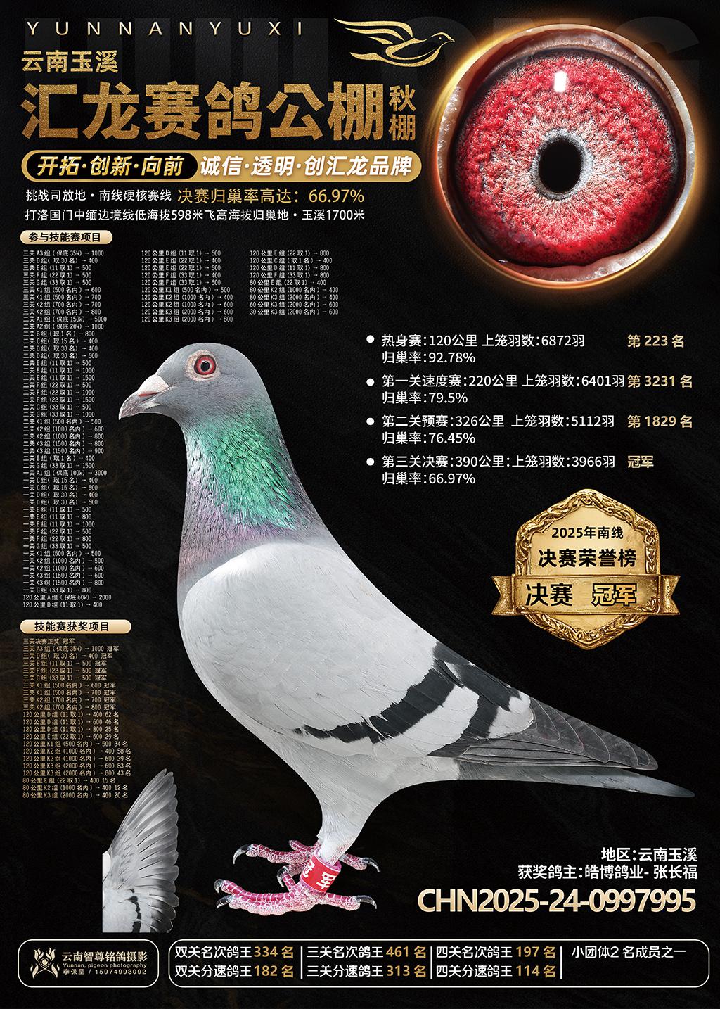 位置:云南玉溪汇龙赛鸽公棚2025获奖鸽展示\决赛1名