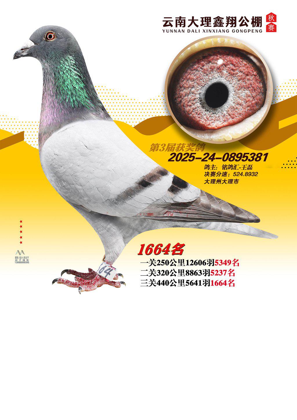 位置:云南大理鑫翔公棚2025获奖鸽展示\1664名