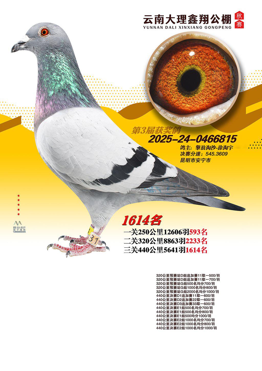 位置:云南大理鑫翔公棚2025获奖鸽展示\1614名