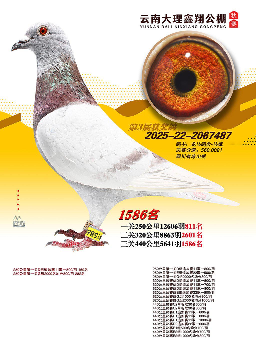 位置:云南大理鑫翔公棚2025获奖鸽展示\1586名