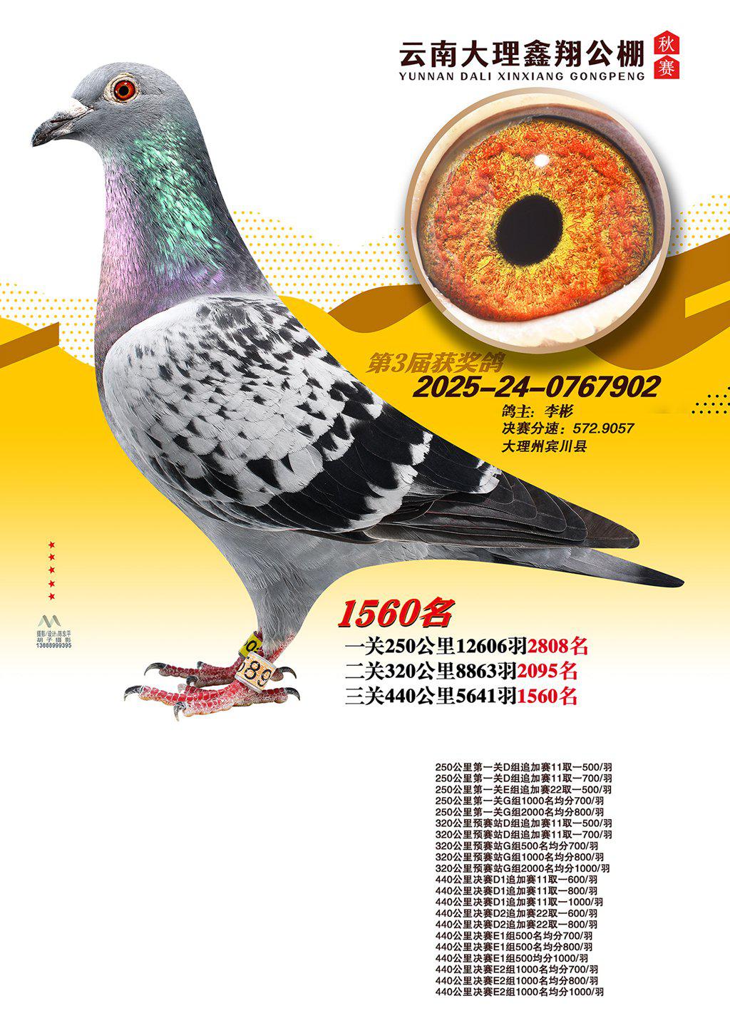 位置:云南大理鑫翔公棚2025获奖鸽展示\1560名