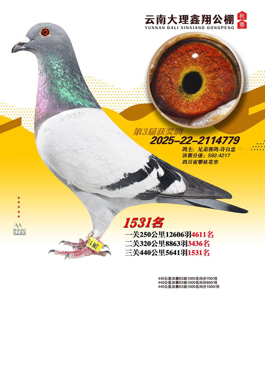 位置:云南大理鑫翔公棚2025获奖鸽展示\1531名
