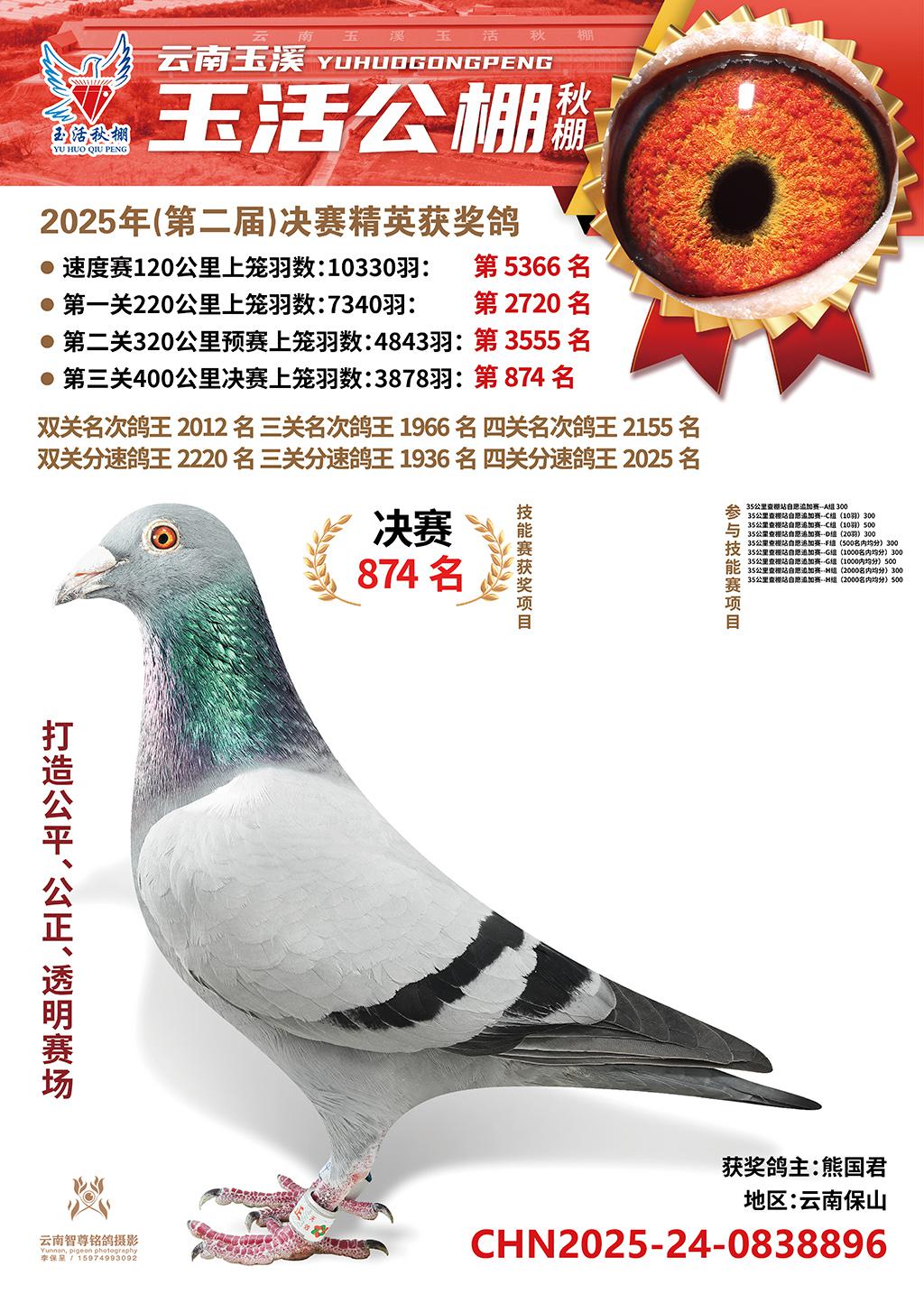 位置:云南玉活公棚秋棚2025获奖鸽展示\决赛874名