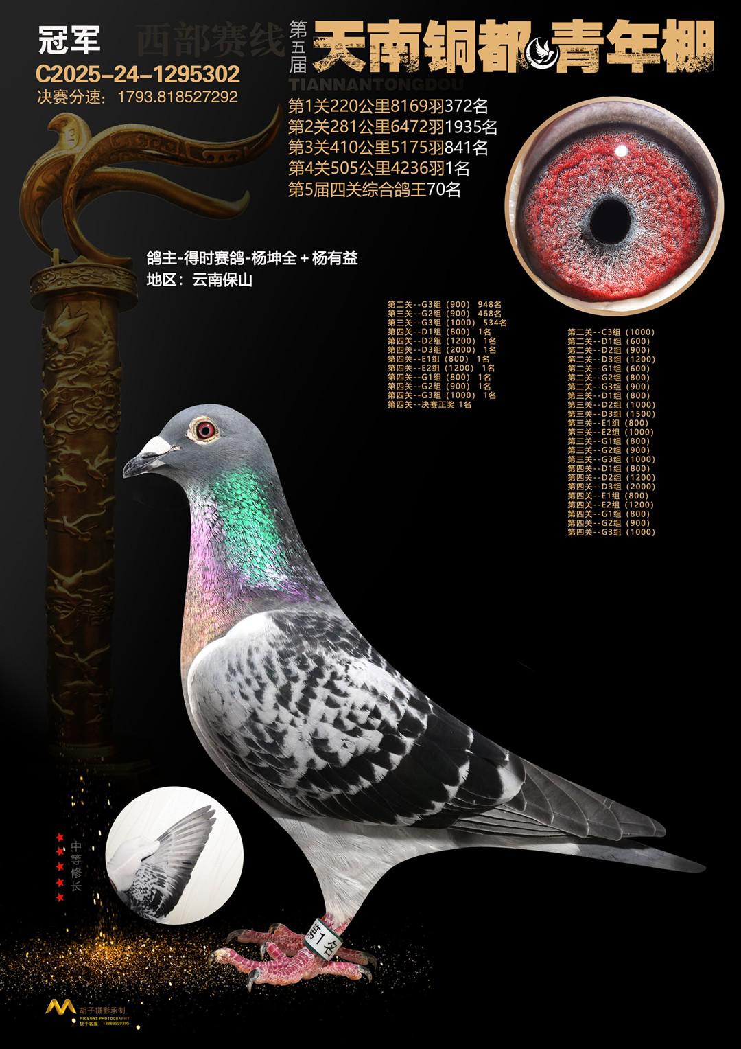 位置:天南铜都青年棚2025获奖鸽展示\决赛站1名