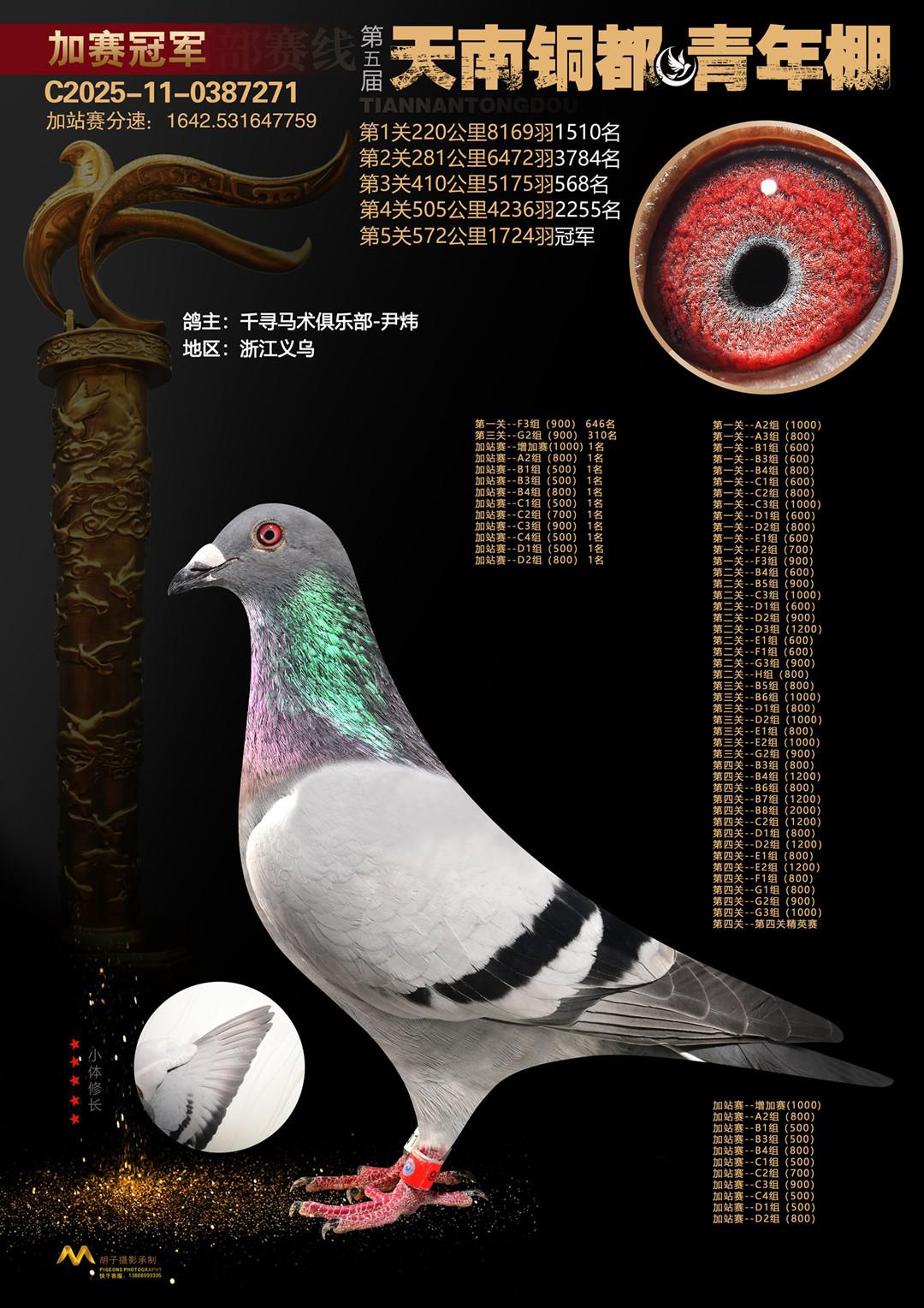 位置:天南铜都青年棚2025获奖鸽展示\加赛1名