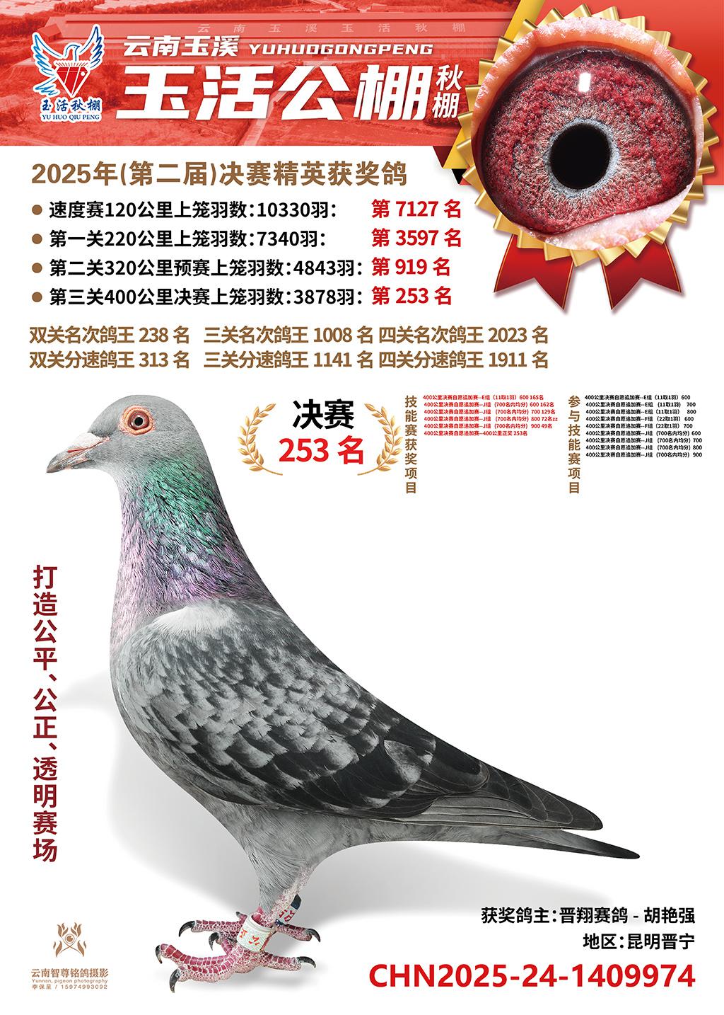 位置:云南玉活公棚秋棚2025获奖鸽展示\决赛253名