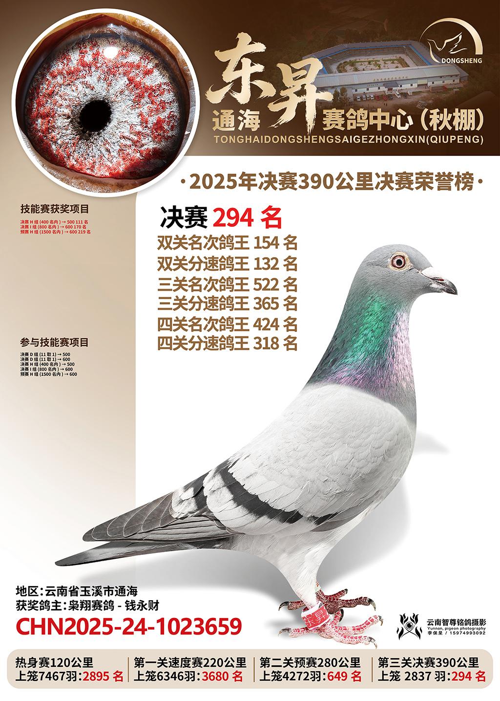 位置:通海东昇赛鸽中心2025获奖鸽展示\决赛294名