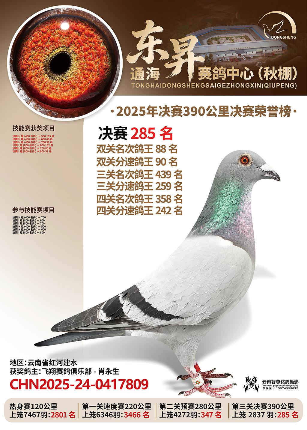 位置:通海东昇赛鸽中心2025获奖鸽展示\决赛285名
