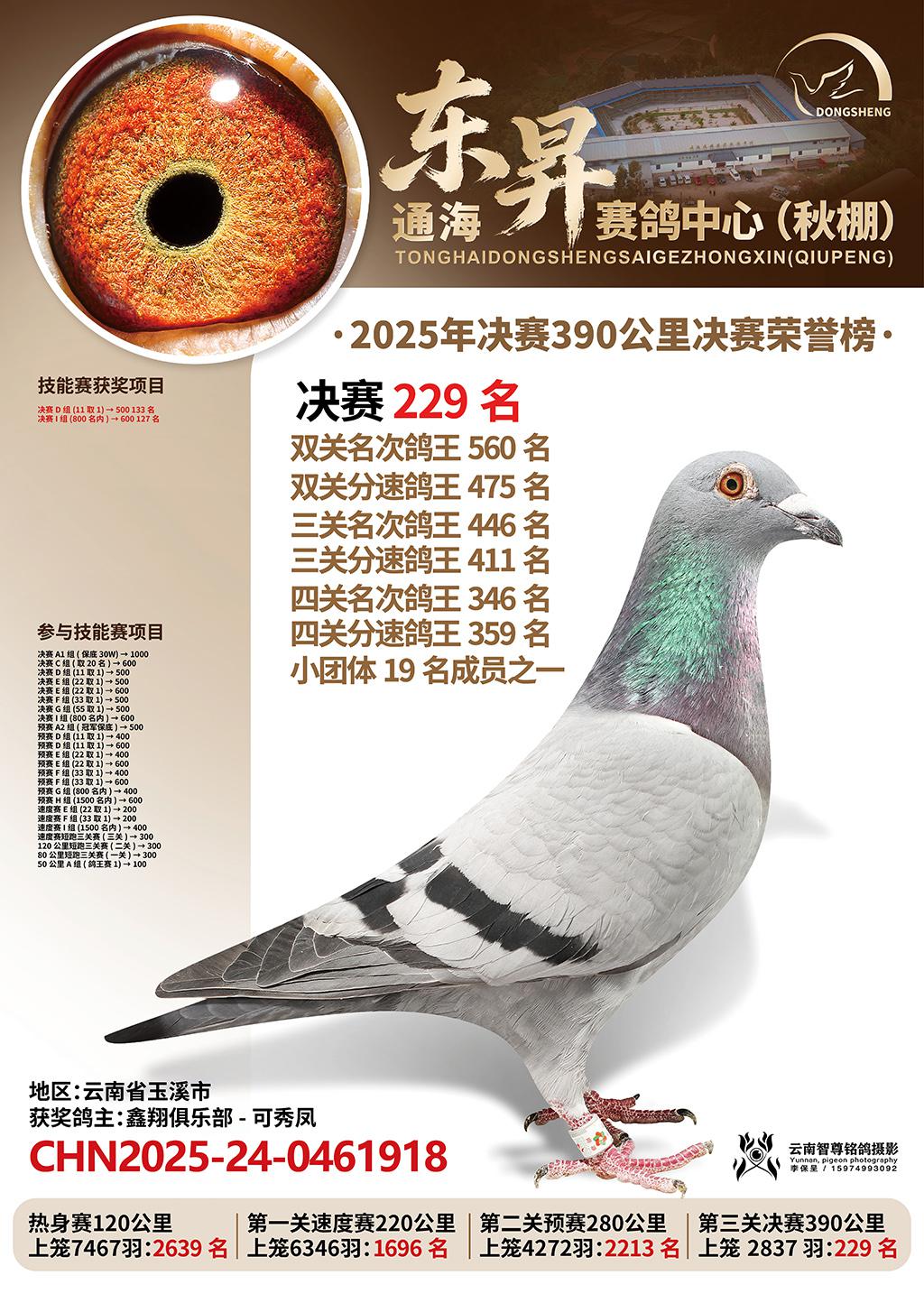 位置:通海东昇赛鸽中心2025获奖鸽展示\决赛229名