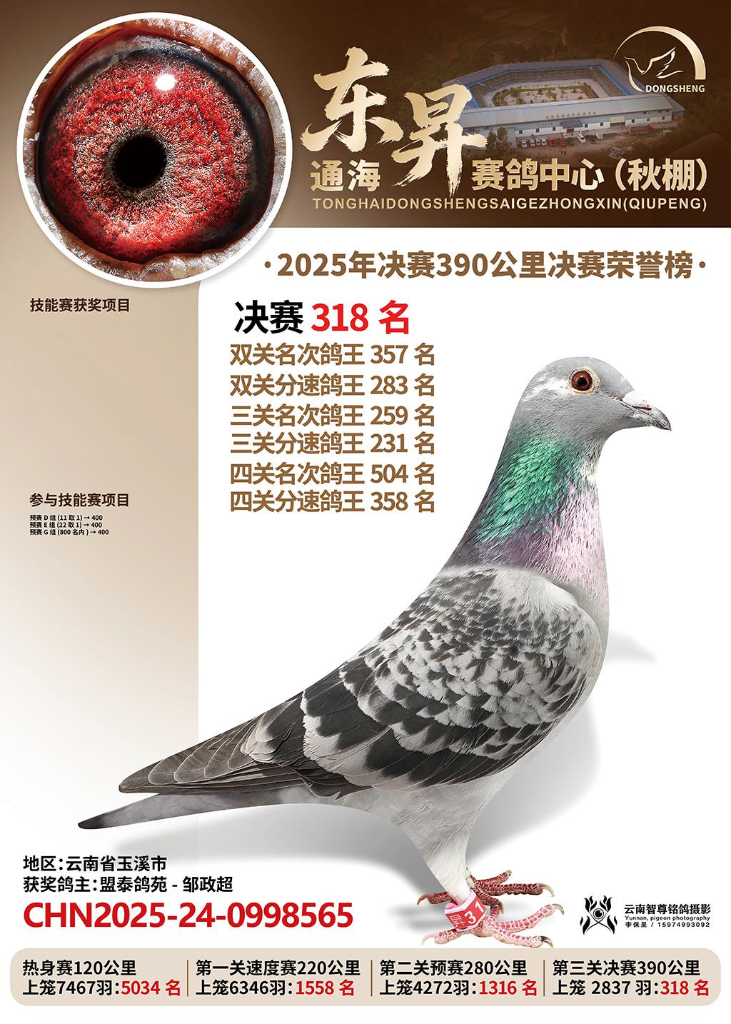 位置:通海东昇赛鸽中心2025获奖鸽展示\决赛318名