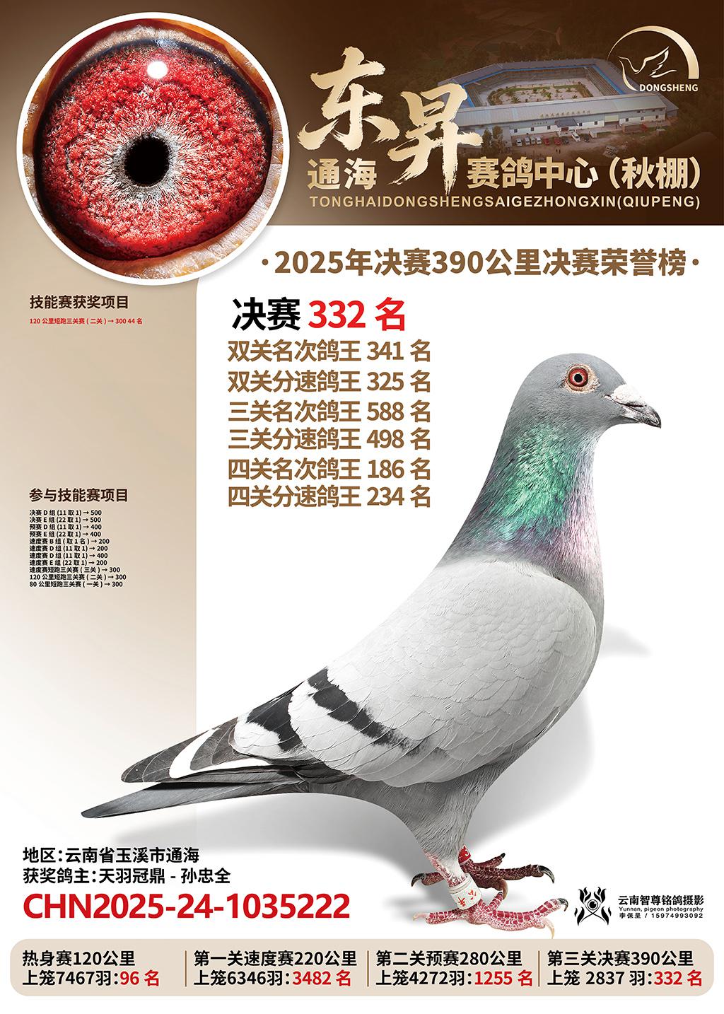 位置:通海东昇赛鸽中心2025获奖鸽展示\决赛332名
