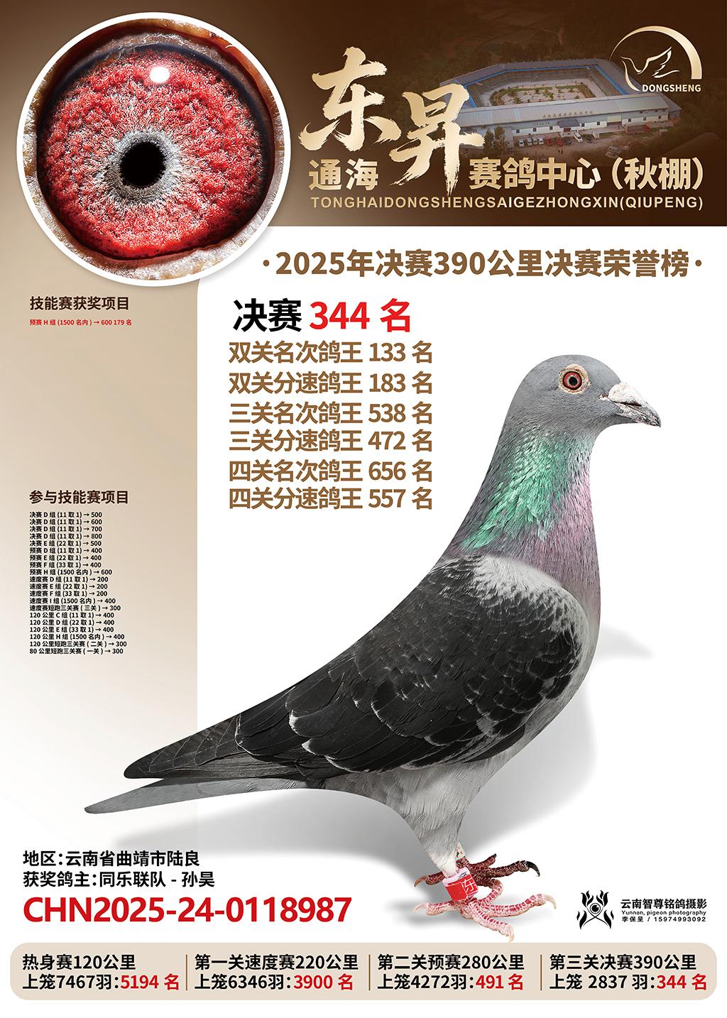 位置:通海东昇赛鸽中心2025获奖鸽展示\决赛344名