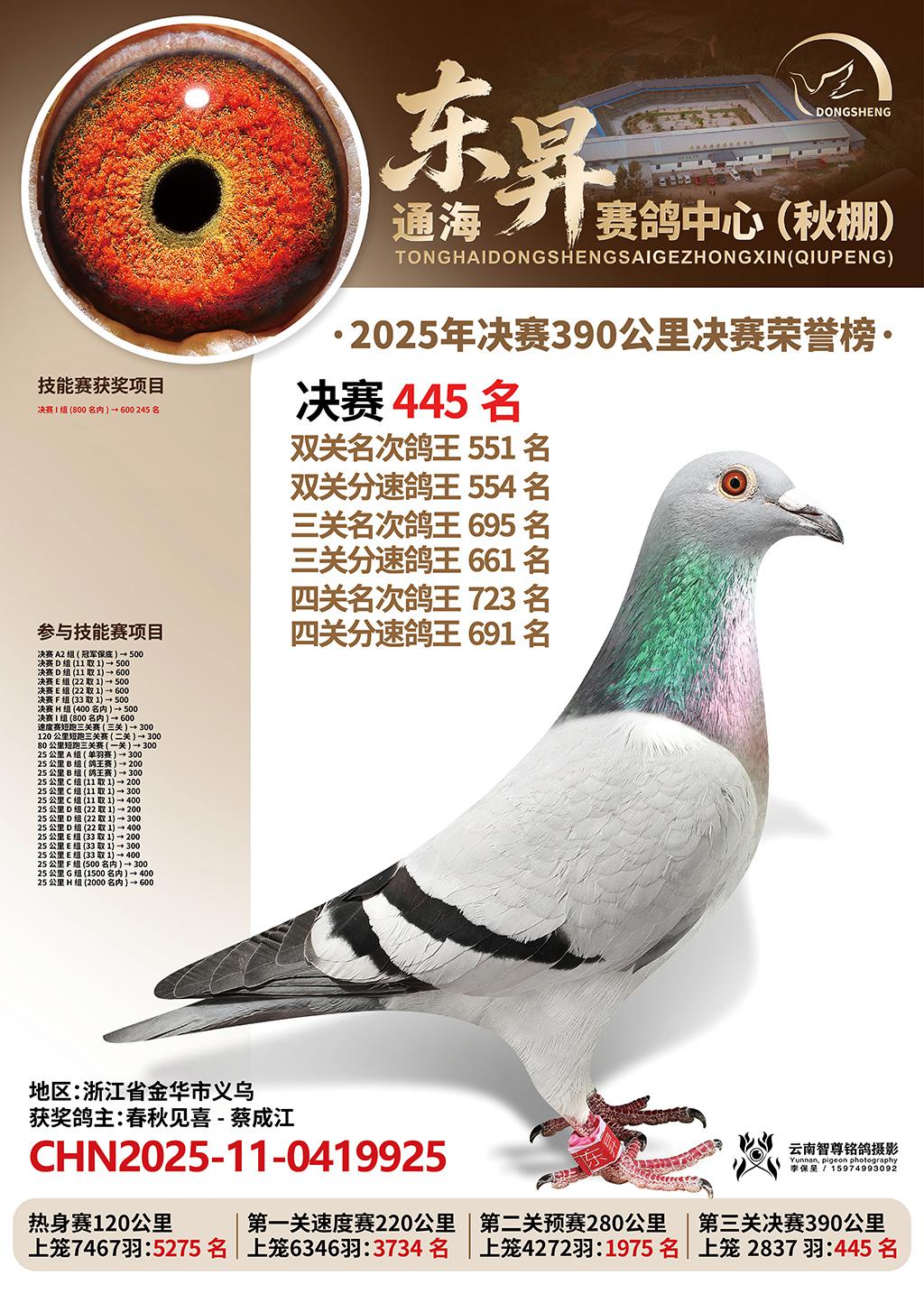 位置:通海东昇赛鸽中心2025获奖鸽展示\决赛445名