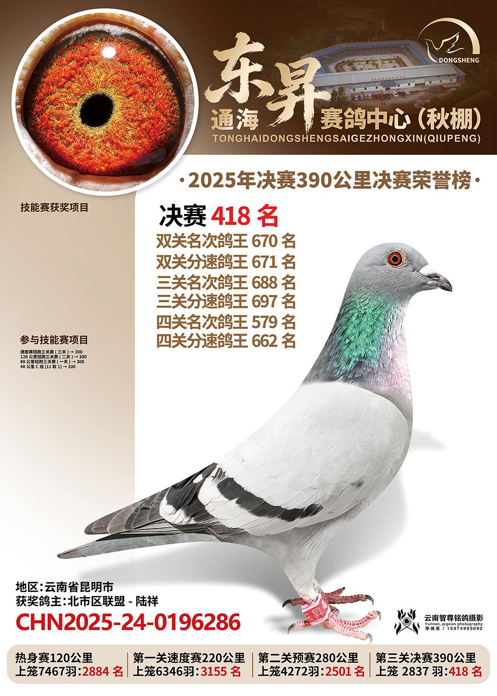 位置:通海东昇赛鸽中心2025获奖鸽展示\决赛418名