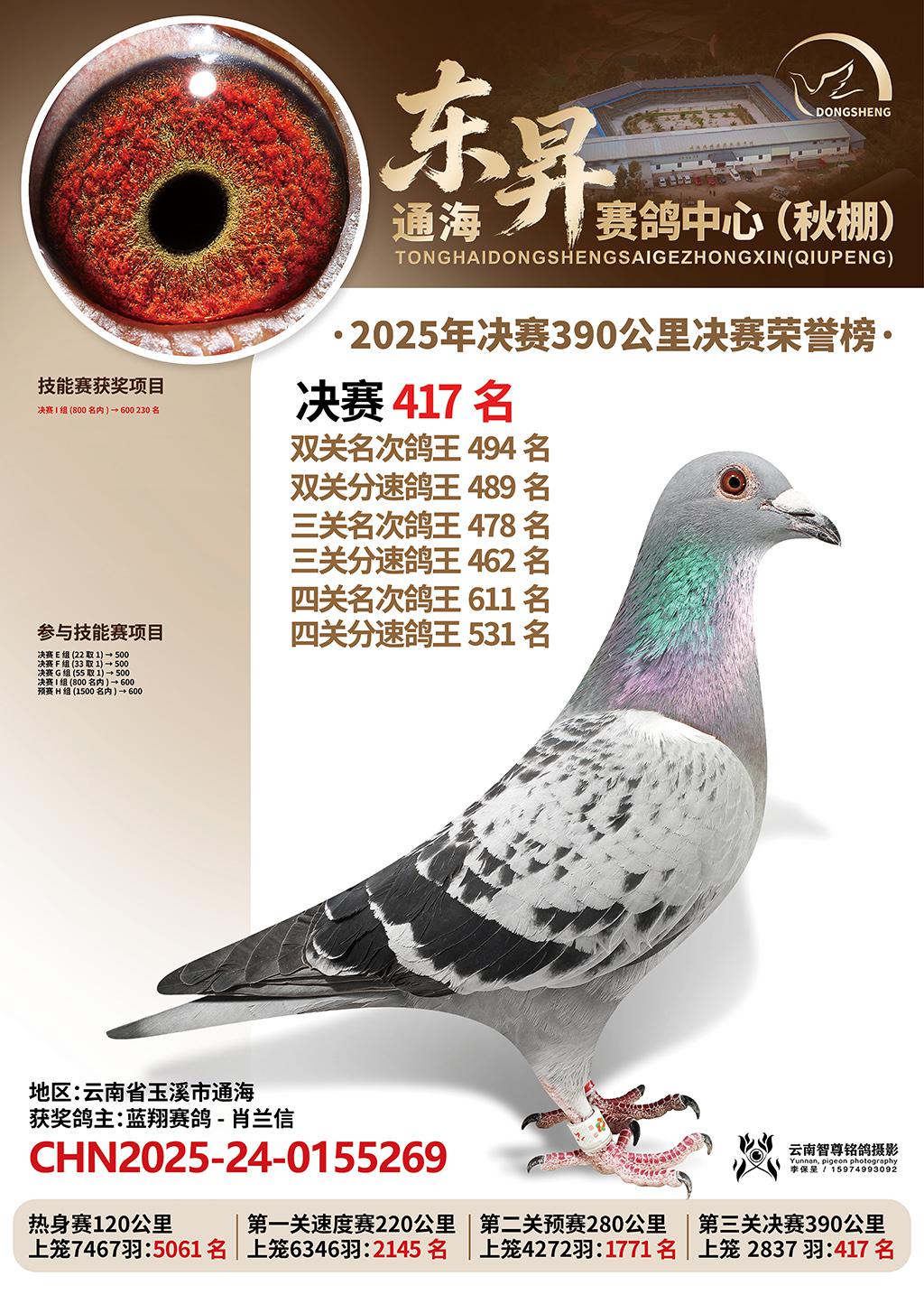 位置:通海东昇赛鸽中心2025获奖鸽展示\决赛417名