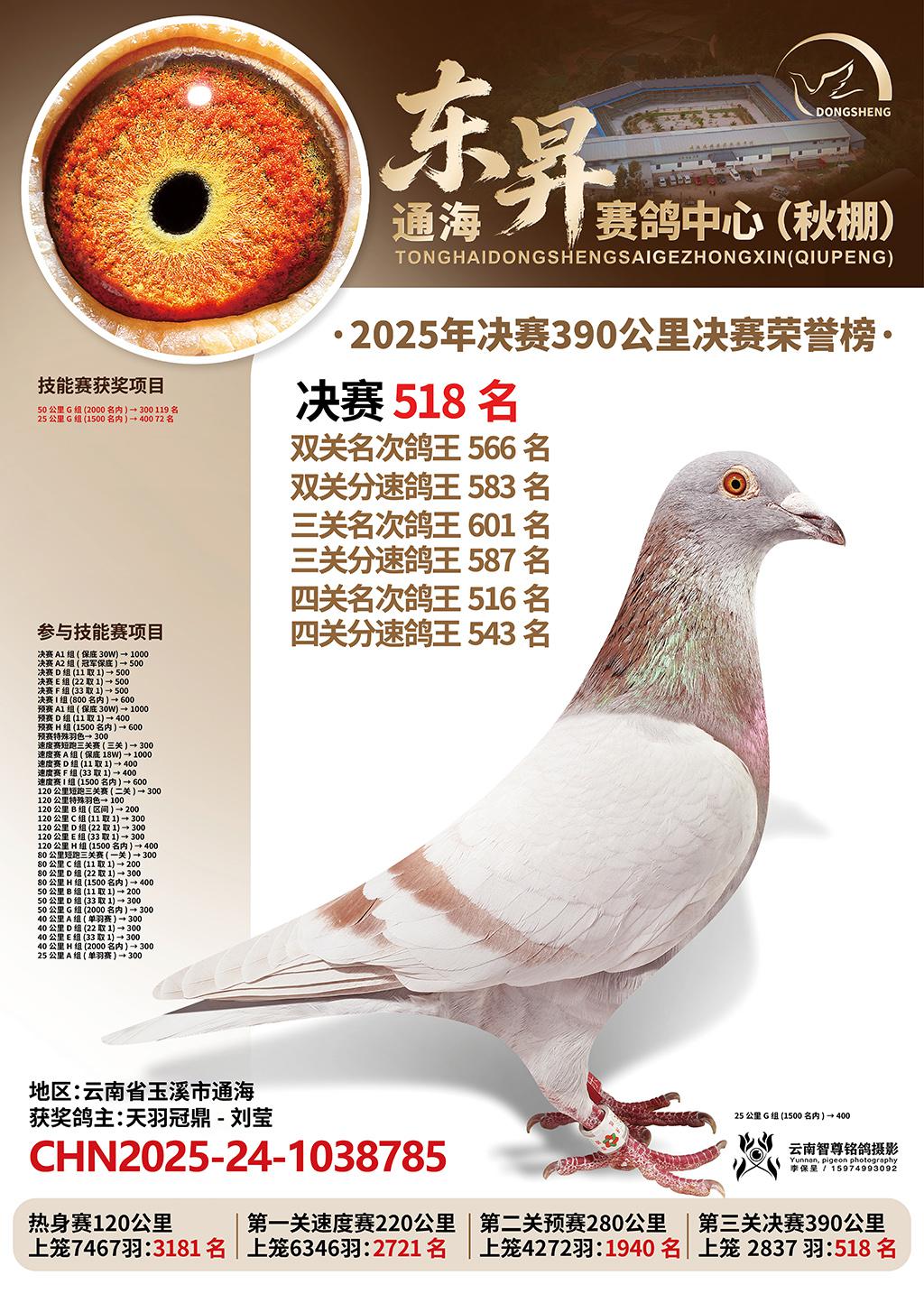位置:通海东昇赛鸽中心2025获奖鸽展示\决赛518名