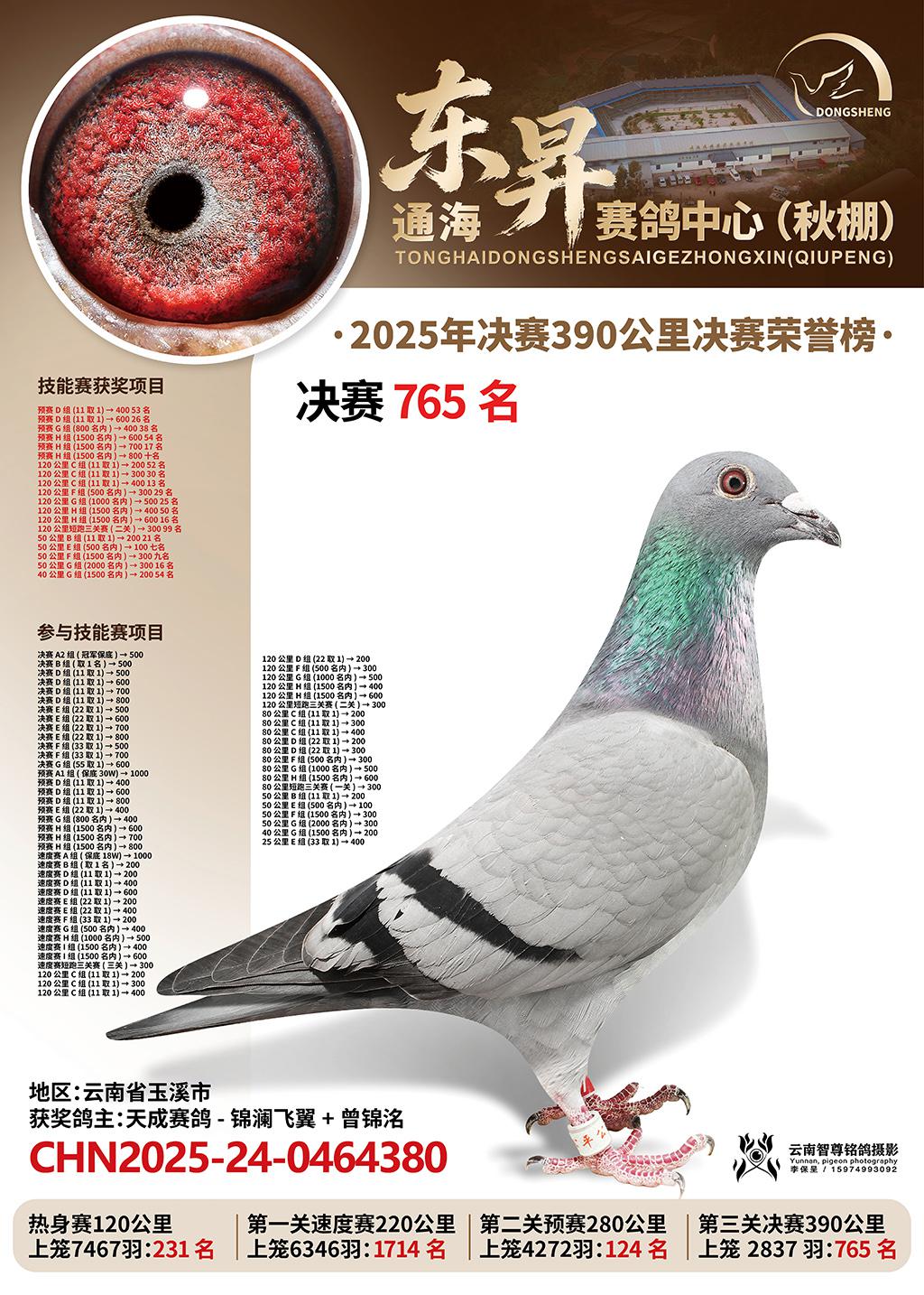 位置:通海东昇赛鸽中心2025获奖鸽展示\决赛765名