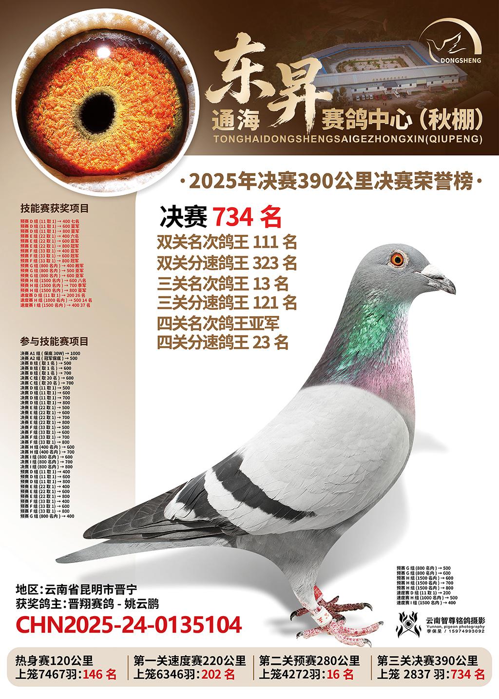 位置:通海东昇赛鸽中心2025获奖鸽展示\决赛734名