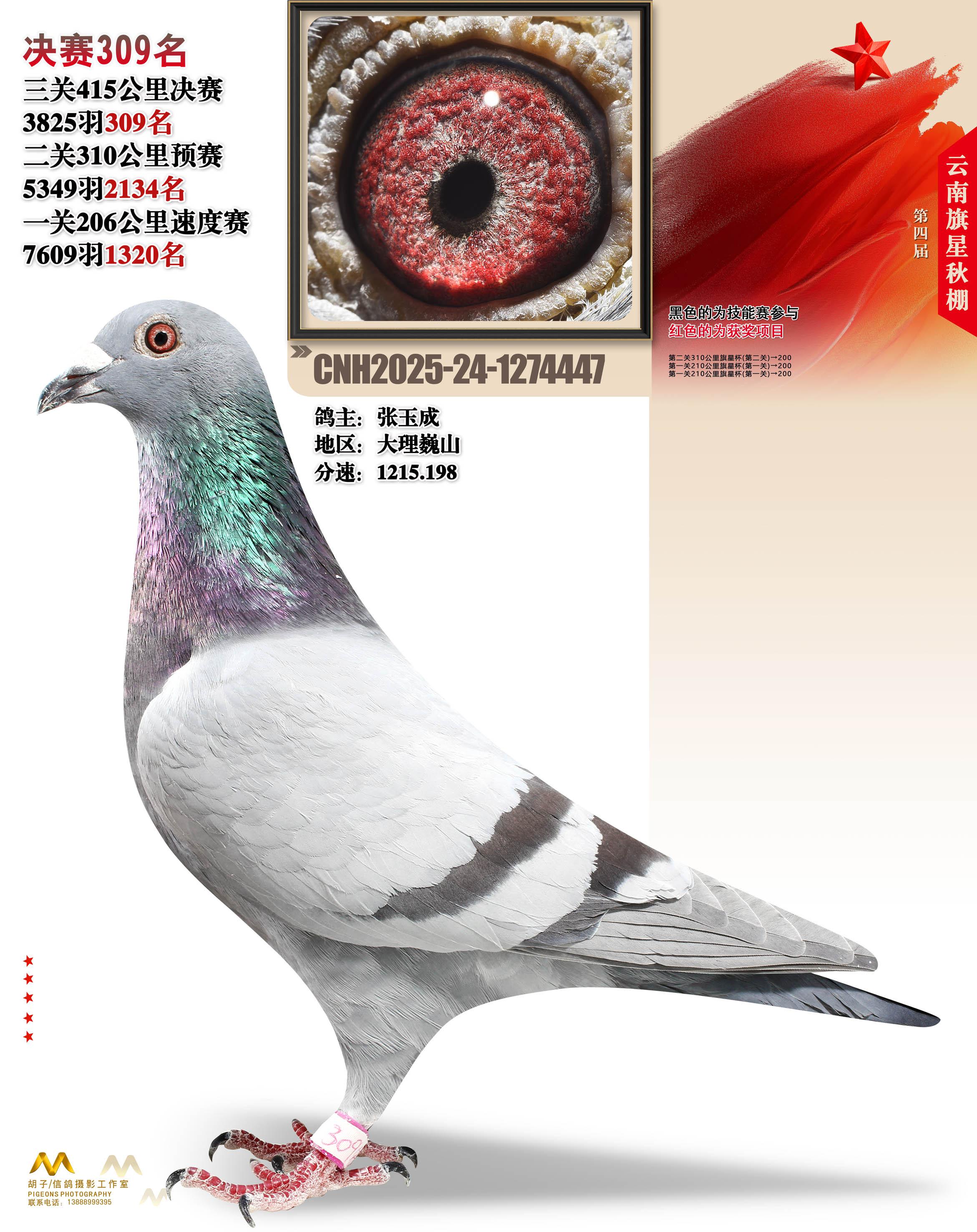 位置:云南大理旗星赛鸽中心2025获奖鸽展示\决赛309名