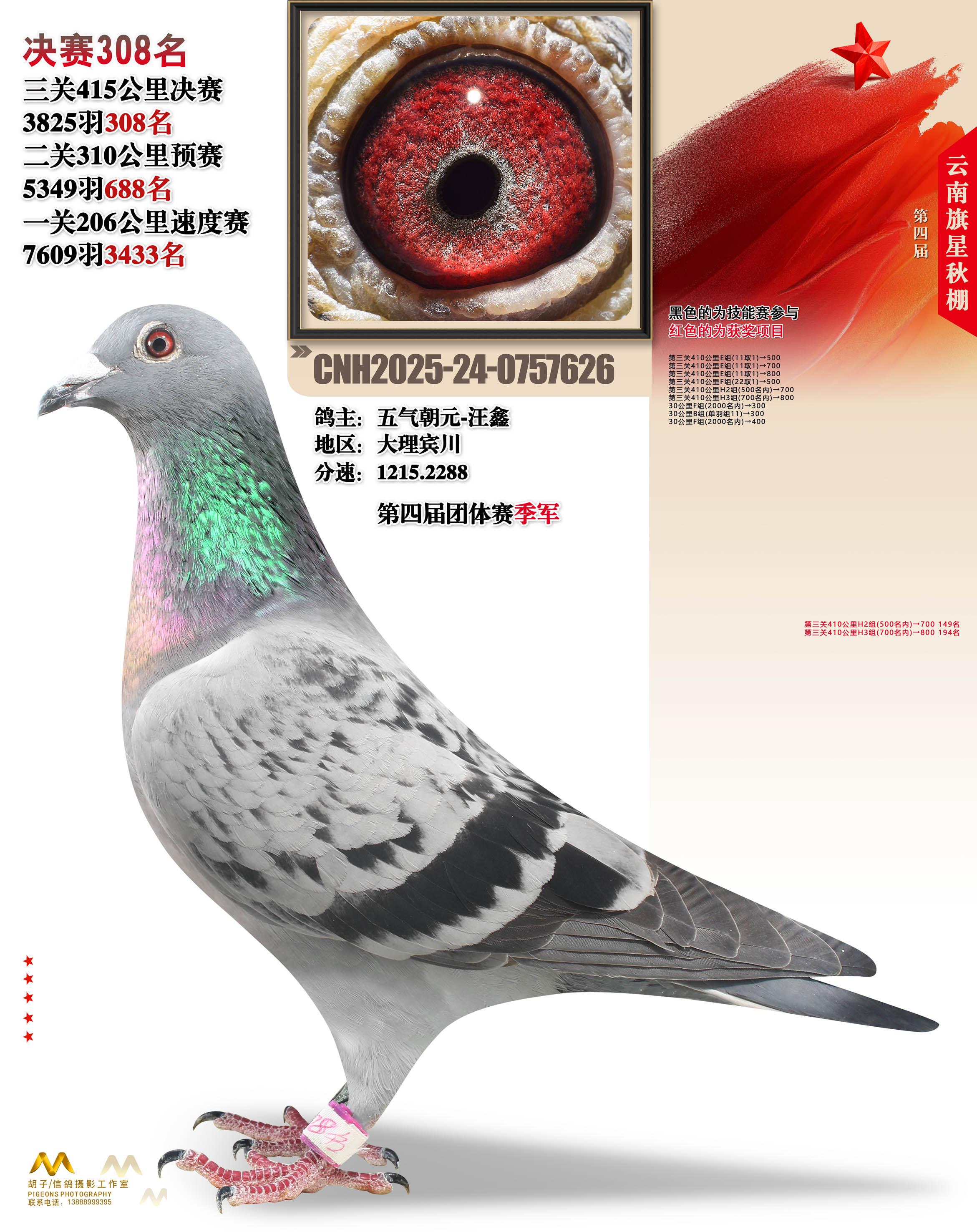 位置:云南大理旗星赛鸽中心2025获奖鸽展示\决赛308名