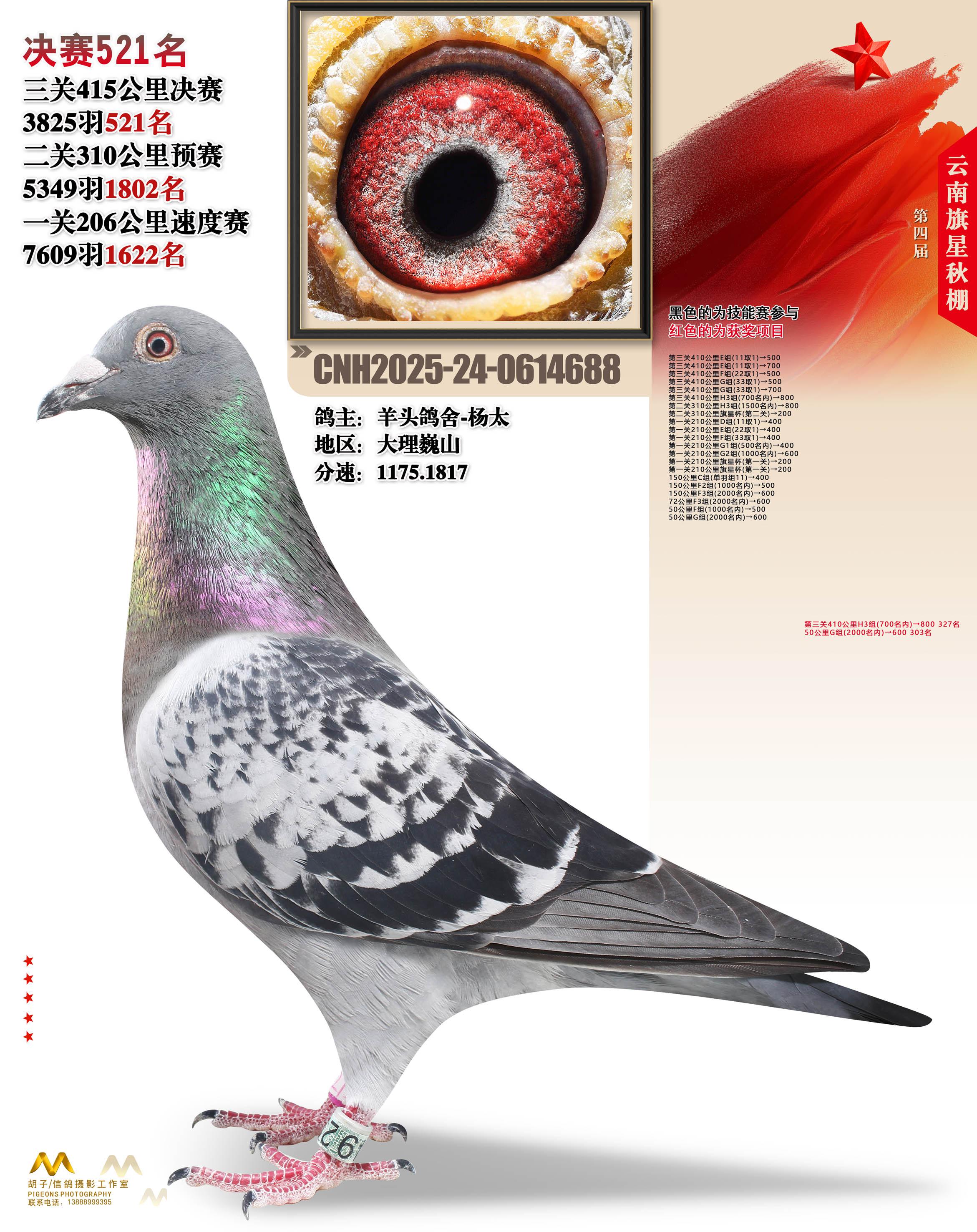 位置:云南大理旗星赛鸽中心2025获奖鸽展示\决赛521名