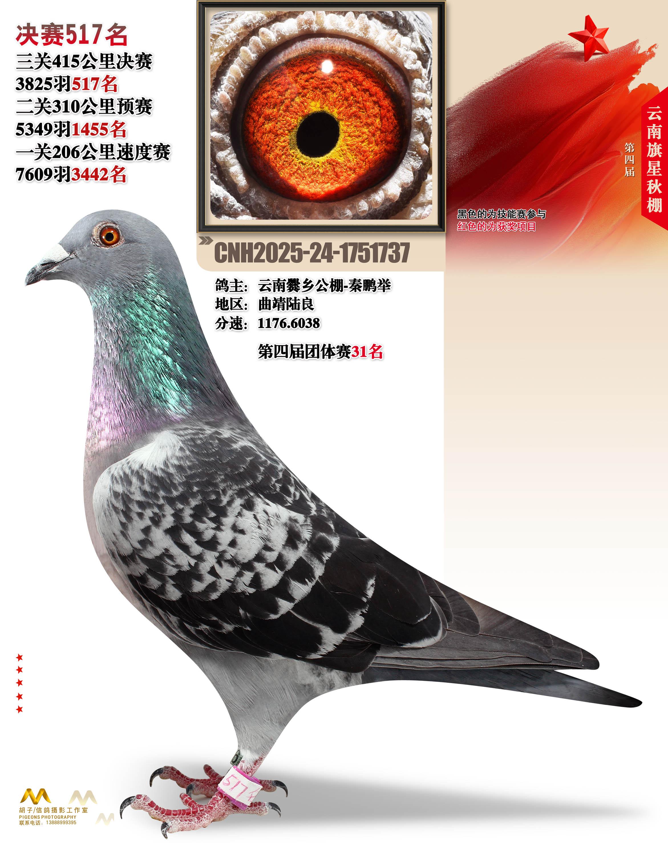 位置:云南大理旗星赛鸽中心2025获奖鸽展示\决赛517名