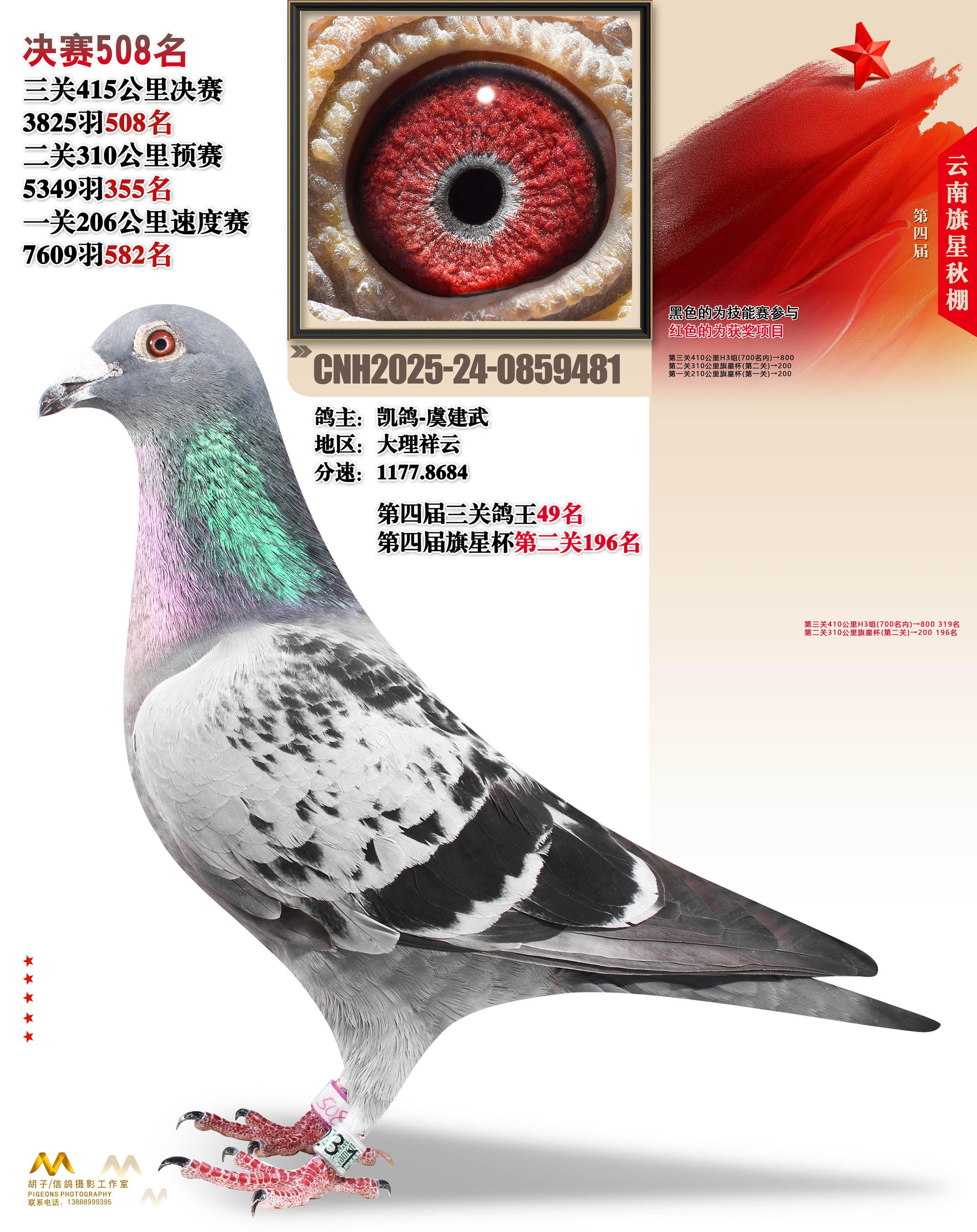 位置:云南大理旗星赛鸽中心2025获奖鸽展示\决赛508名