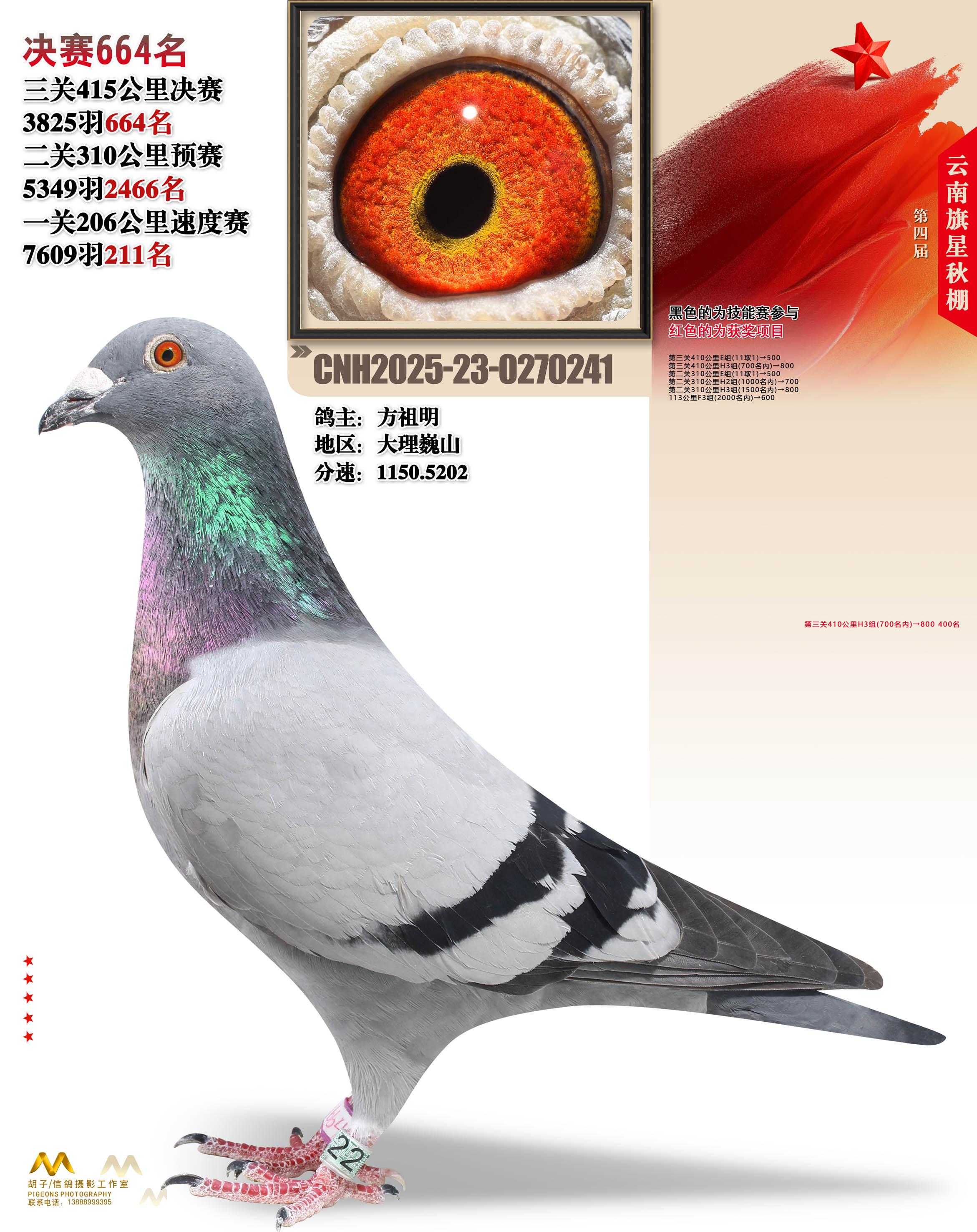 位置:云南大理旗星赛鸽中心2025获奖鸽展示\决赛664名