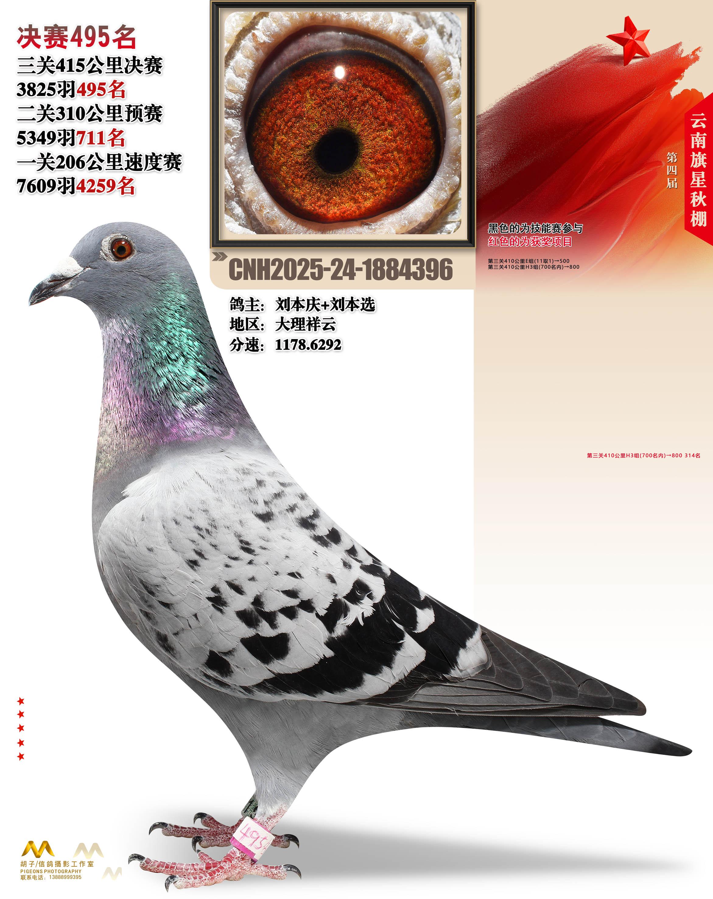 位置:云南大理旗星赛鸽中心2025获奖鸽展示\决赛495名