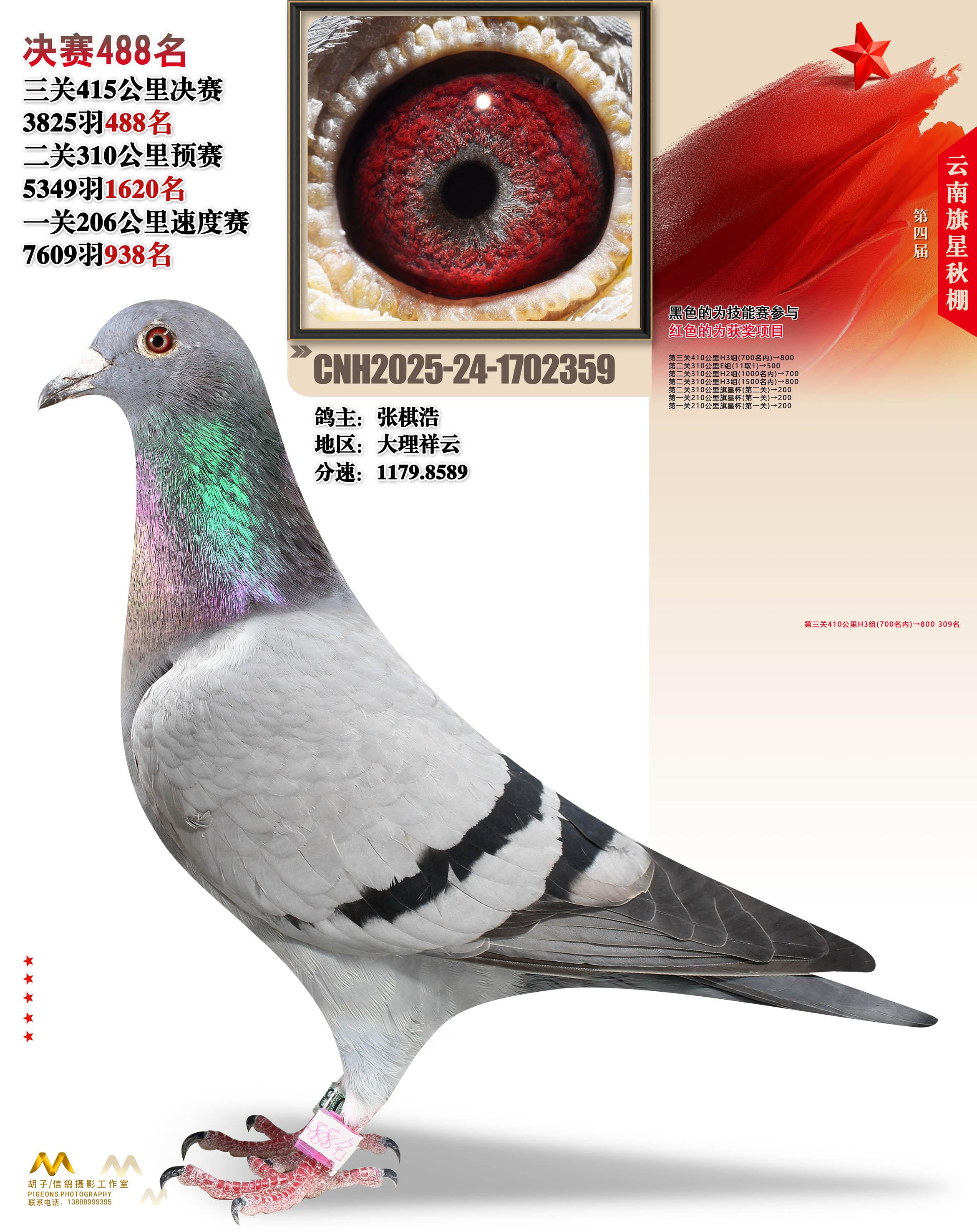 位置:云南大理旗星赛鸽中心2025获奖鸽展示\决赛488名