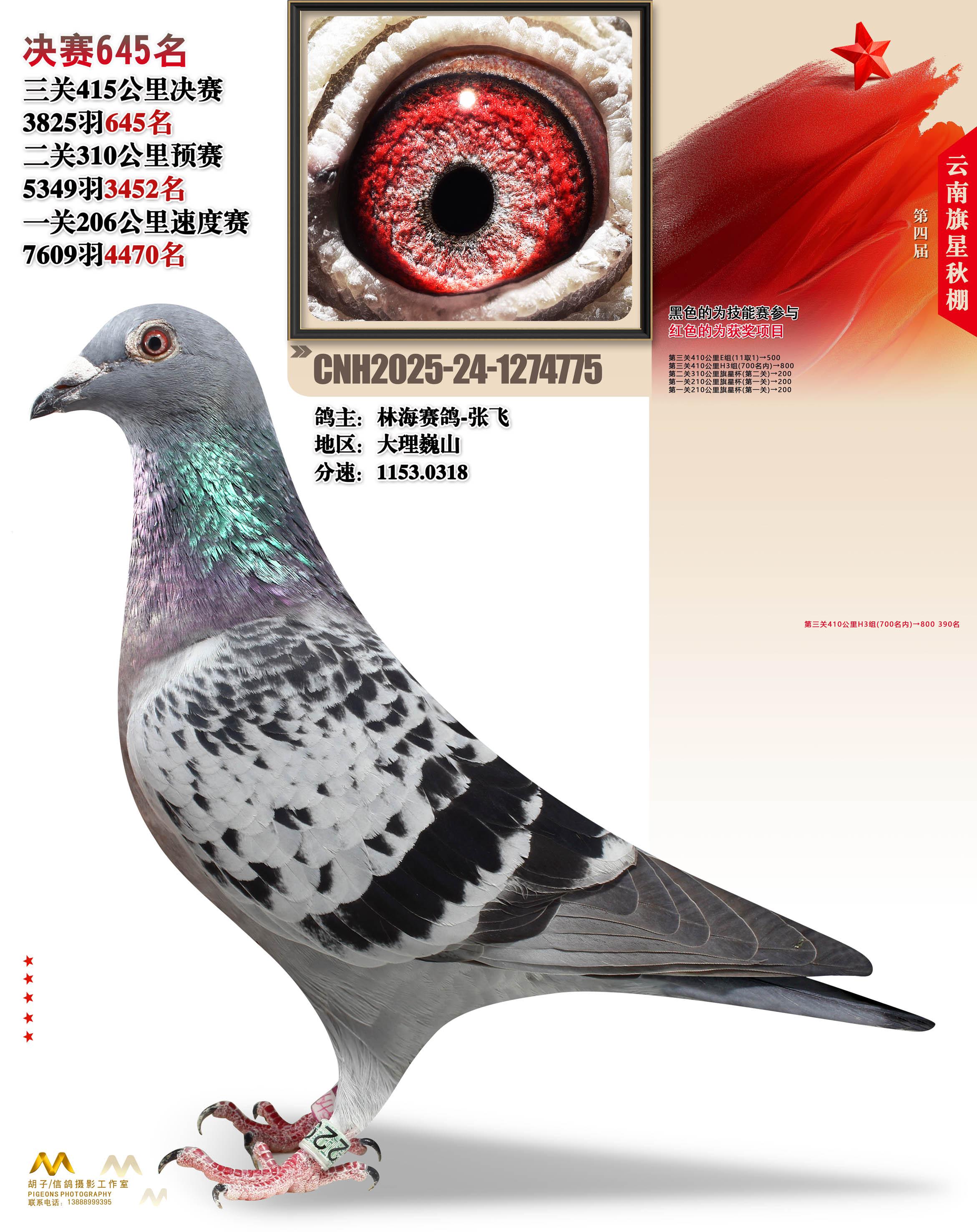 位置:云南大理旗星赛鸽中心2025获奖鸽展示\决赛645名