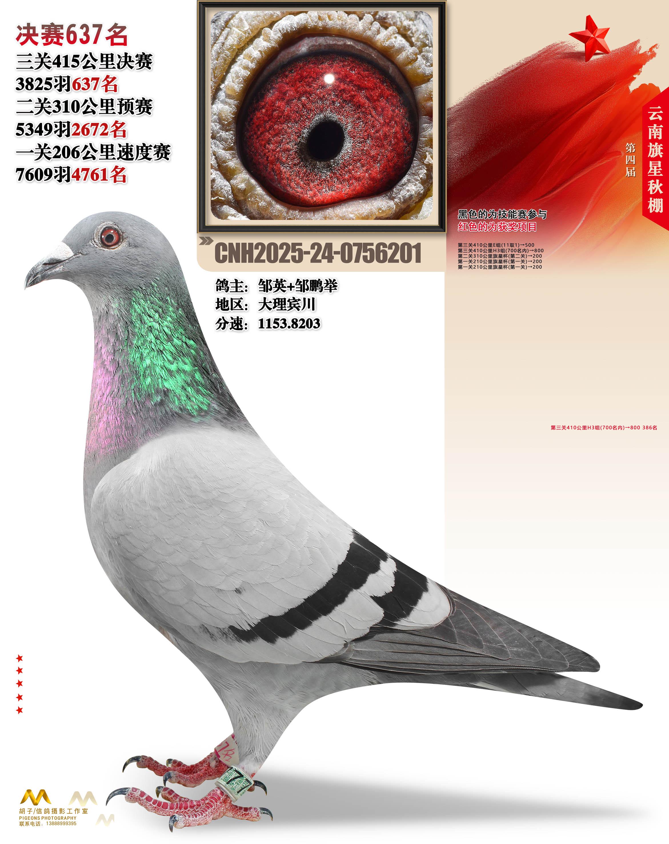 位置:云南大理旗星赛鸽中心2025获奖鸽展示\决赛637名