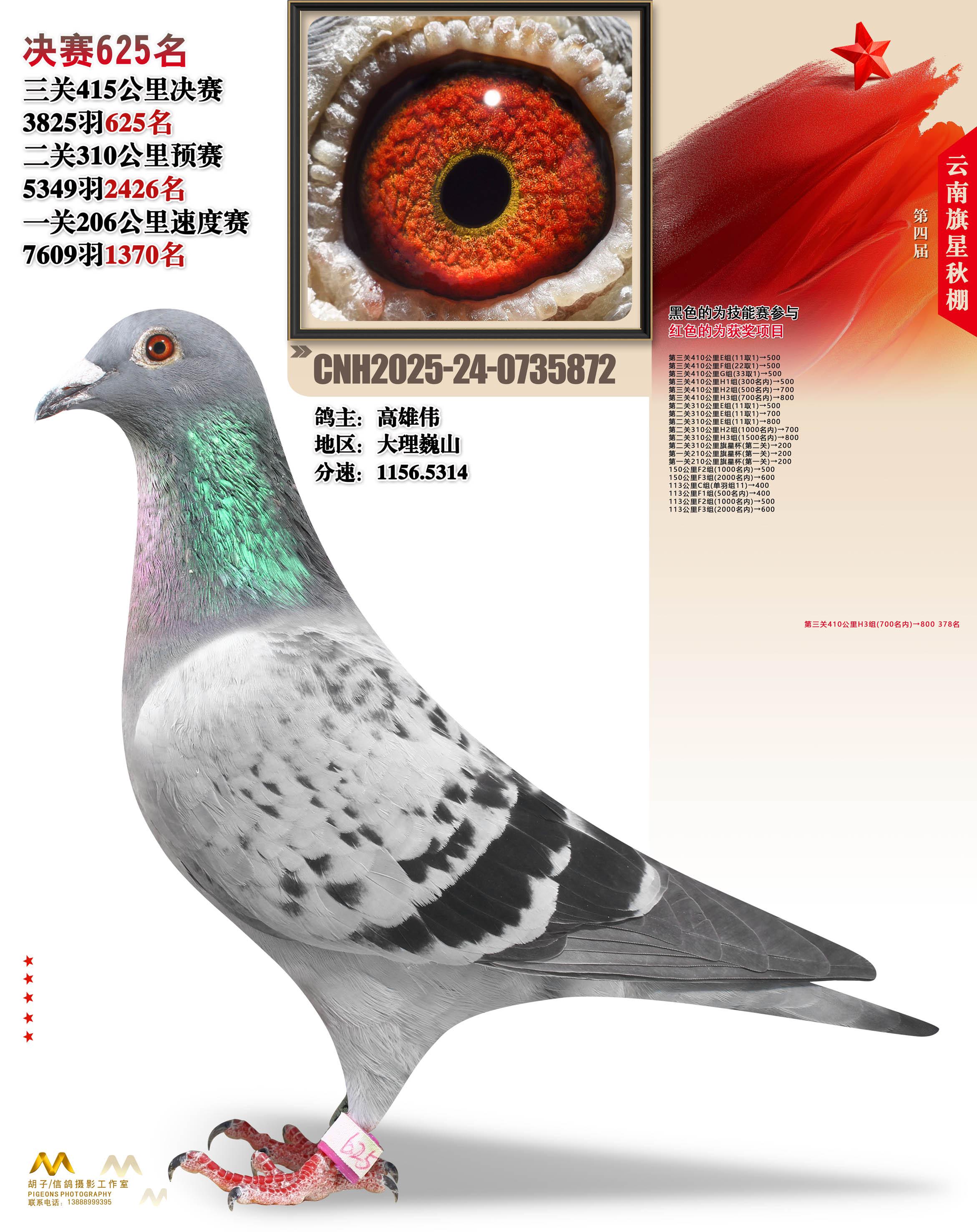 位置:云南大理旗星赛鸽中心2025获奖鸽展示\决赛625名