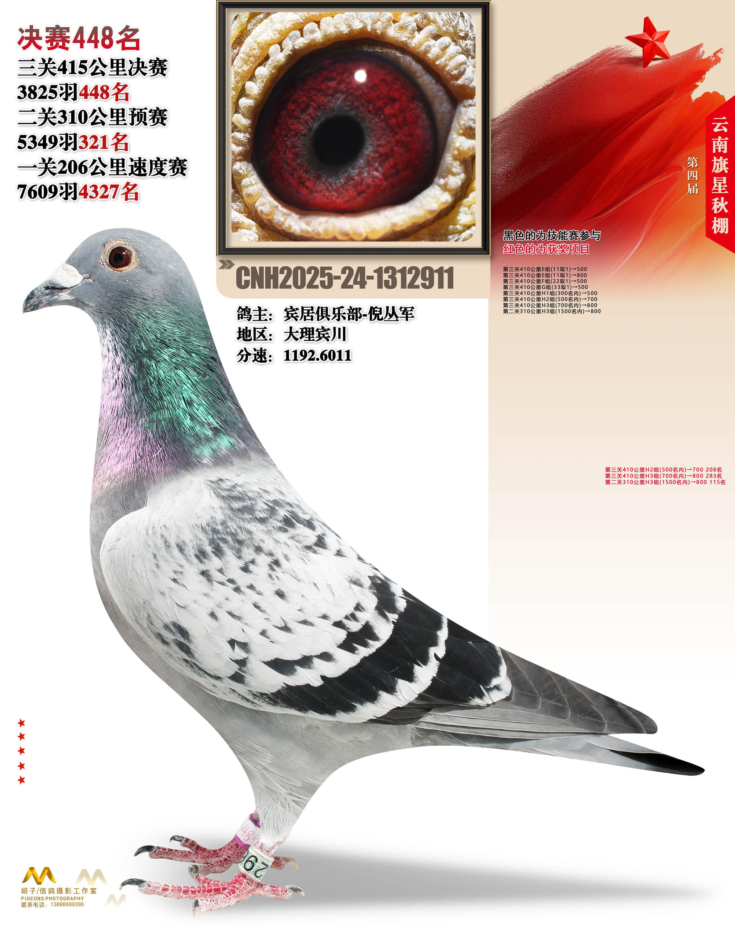 位置:云南大理旗星赛鸽中心2025获奖鸽展示\决赛448名