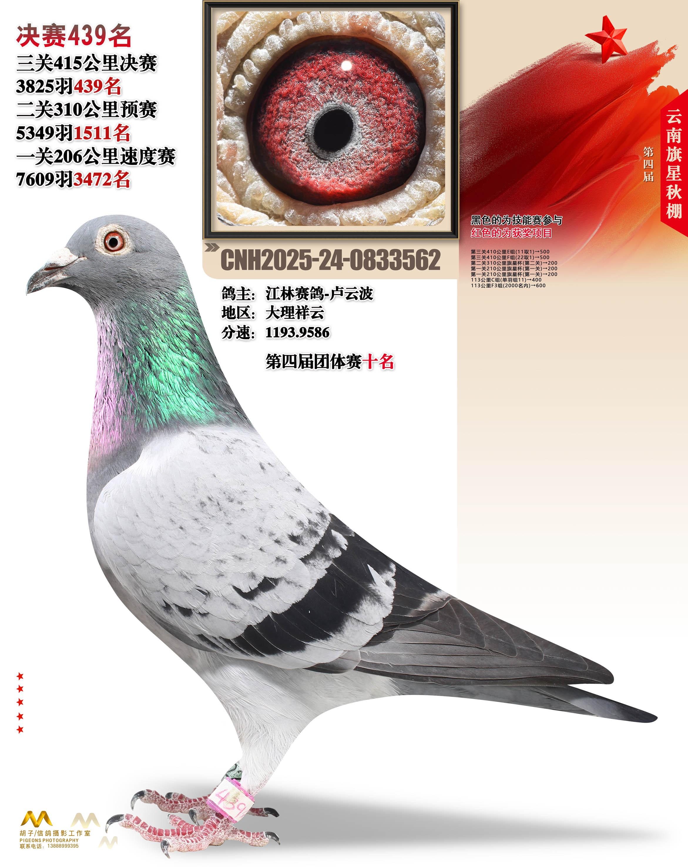 位置:云南大理旗星赛鸽中心2025获奖鸽展示\决赛439名