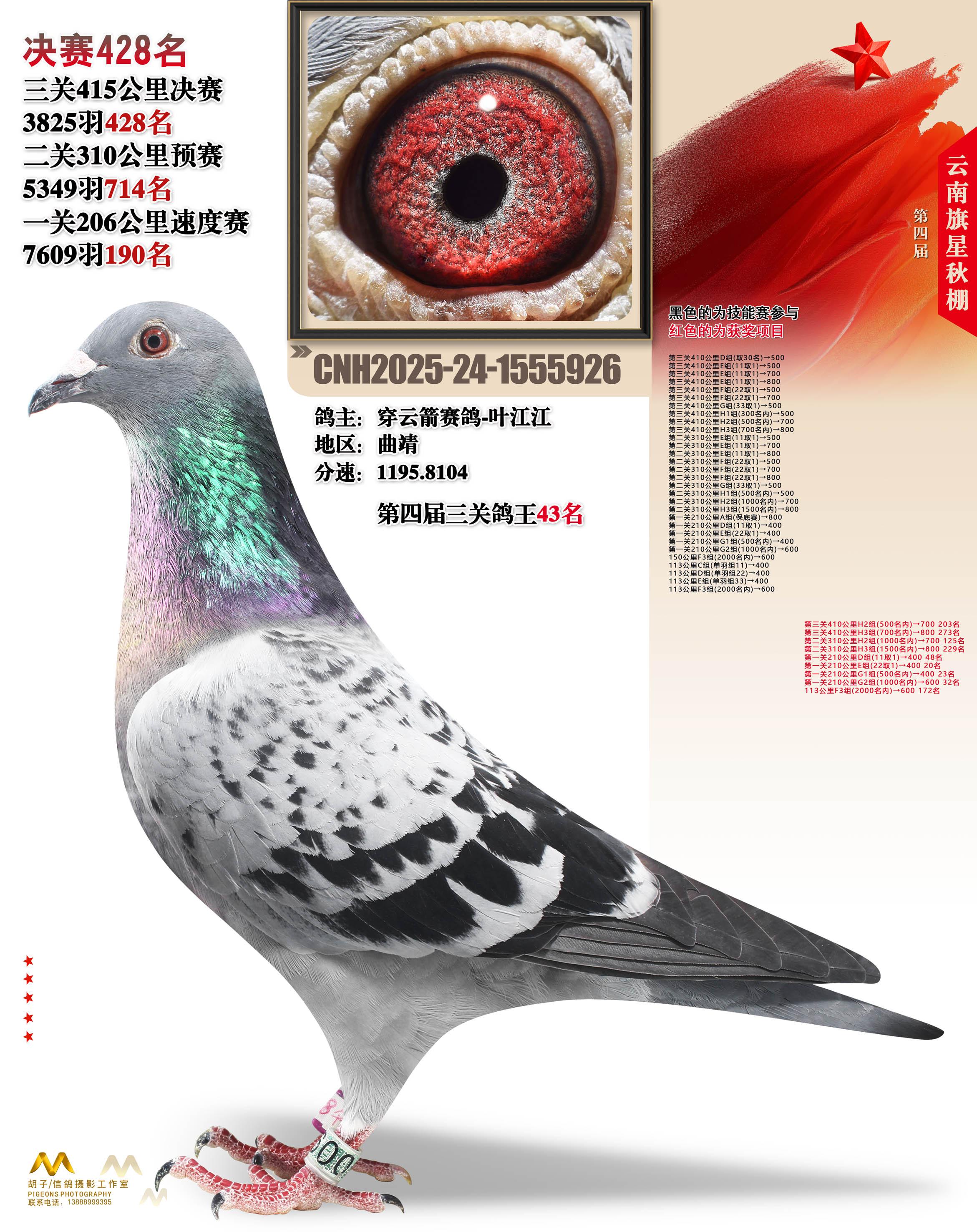 位置:云南大理旗星赛鸽中心2025获奖鸽展示\决赛428名