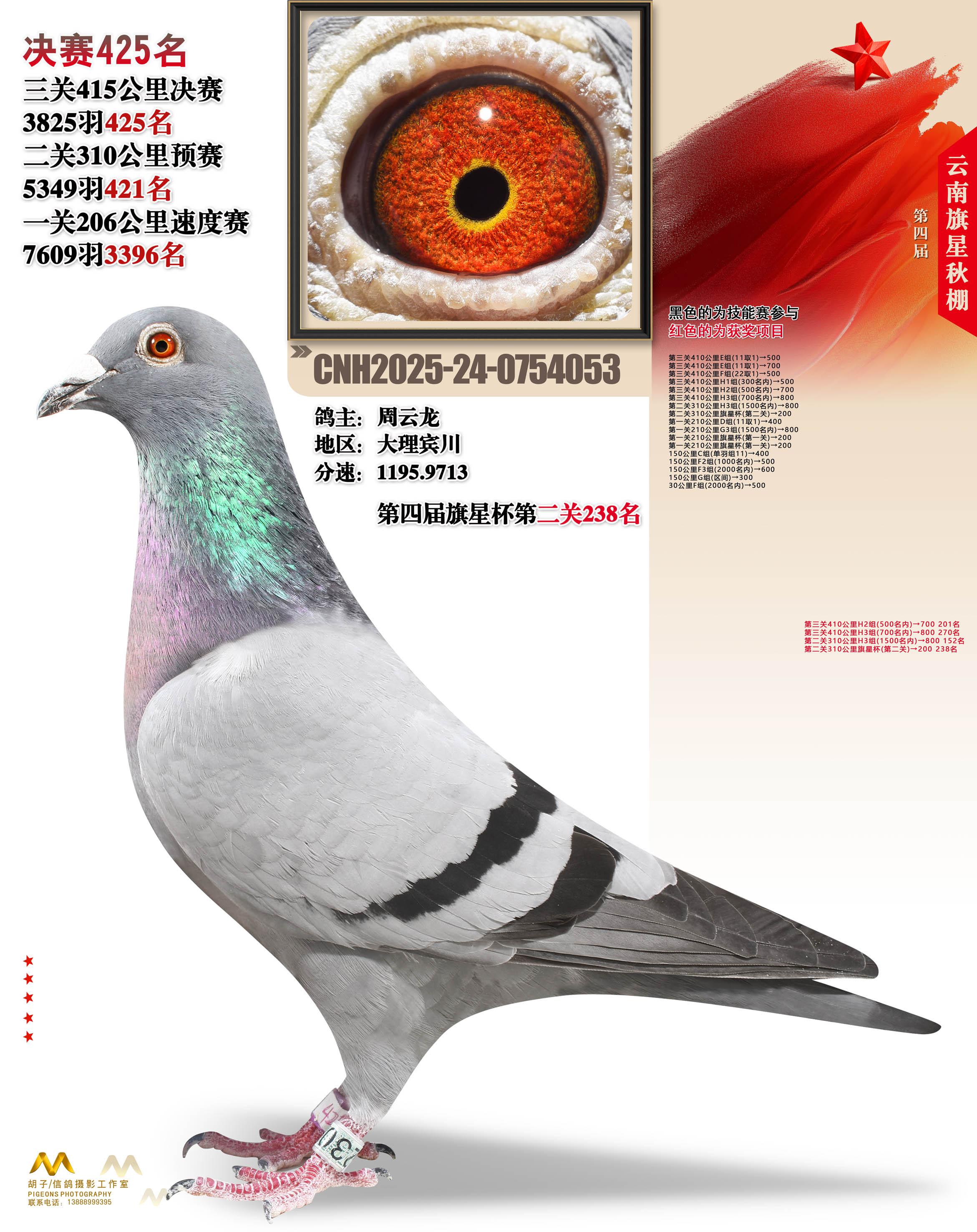 位置:云南大理旗星赛鸽中心2025获奖鸽展示\决赛425名